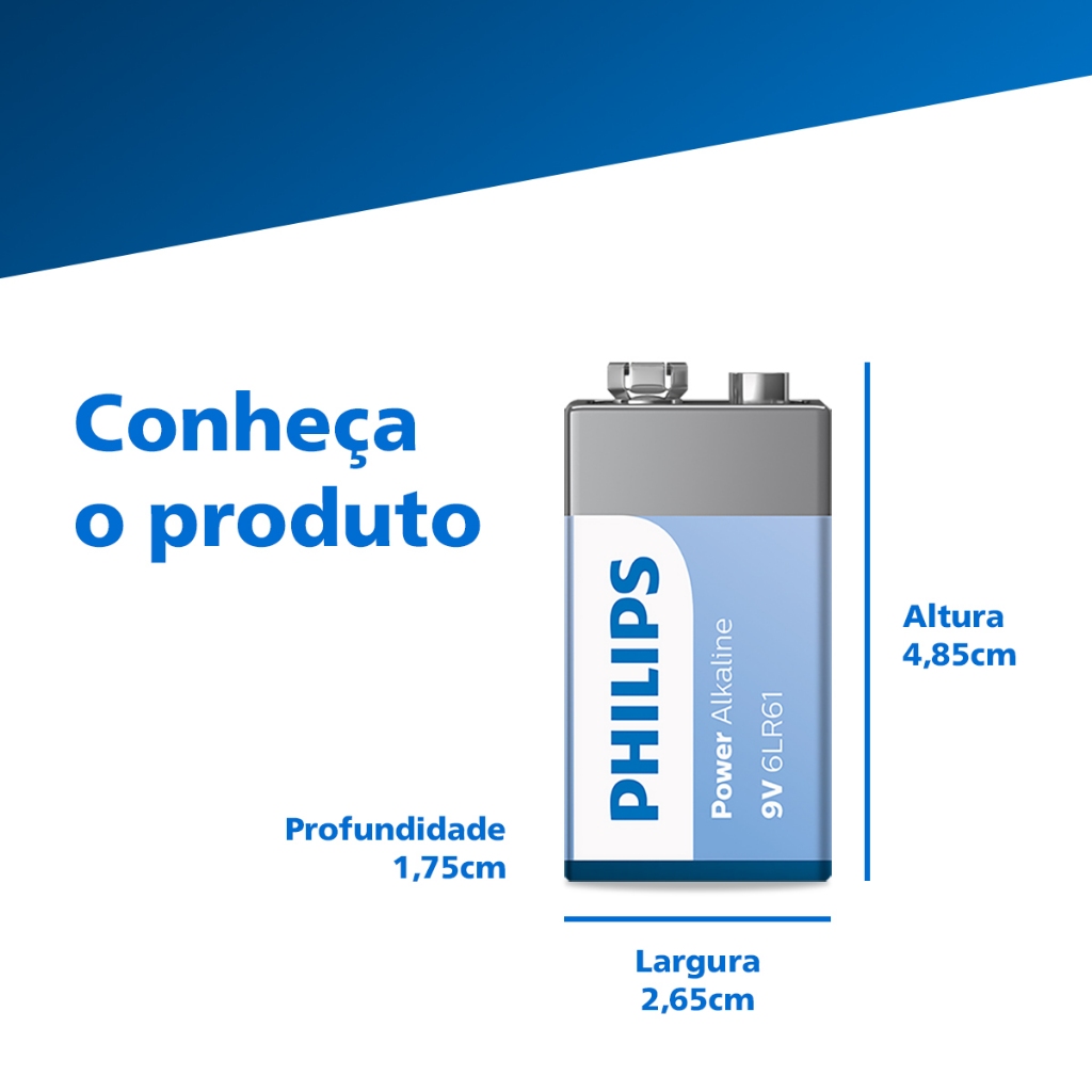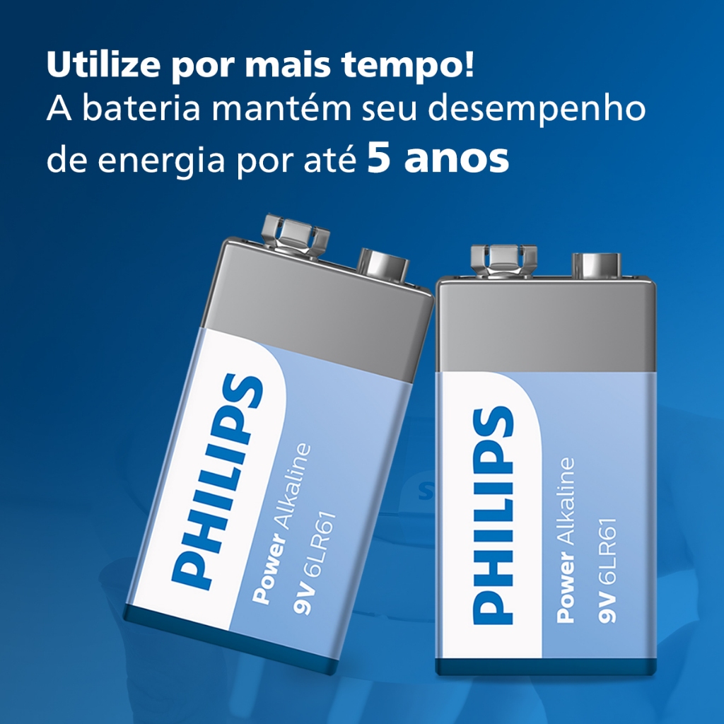 Pilha Alcalina 9V Philips Bateria 9 Volts 6LR61 6F22 kit 2 unidades