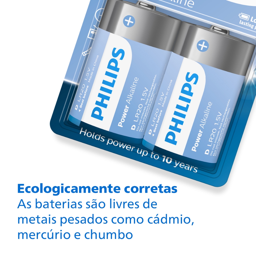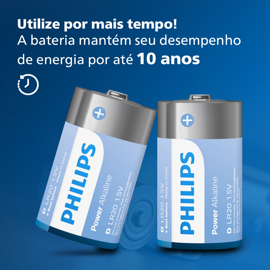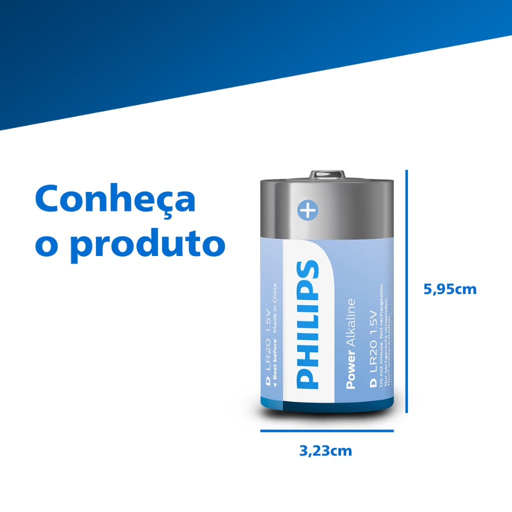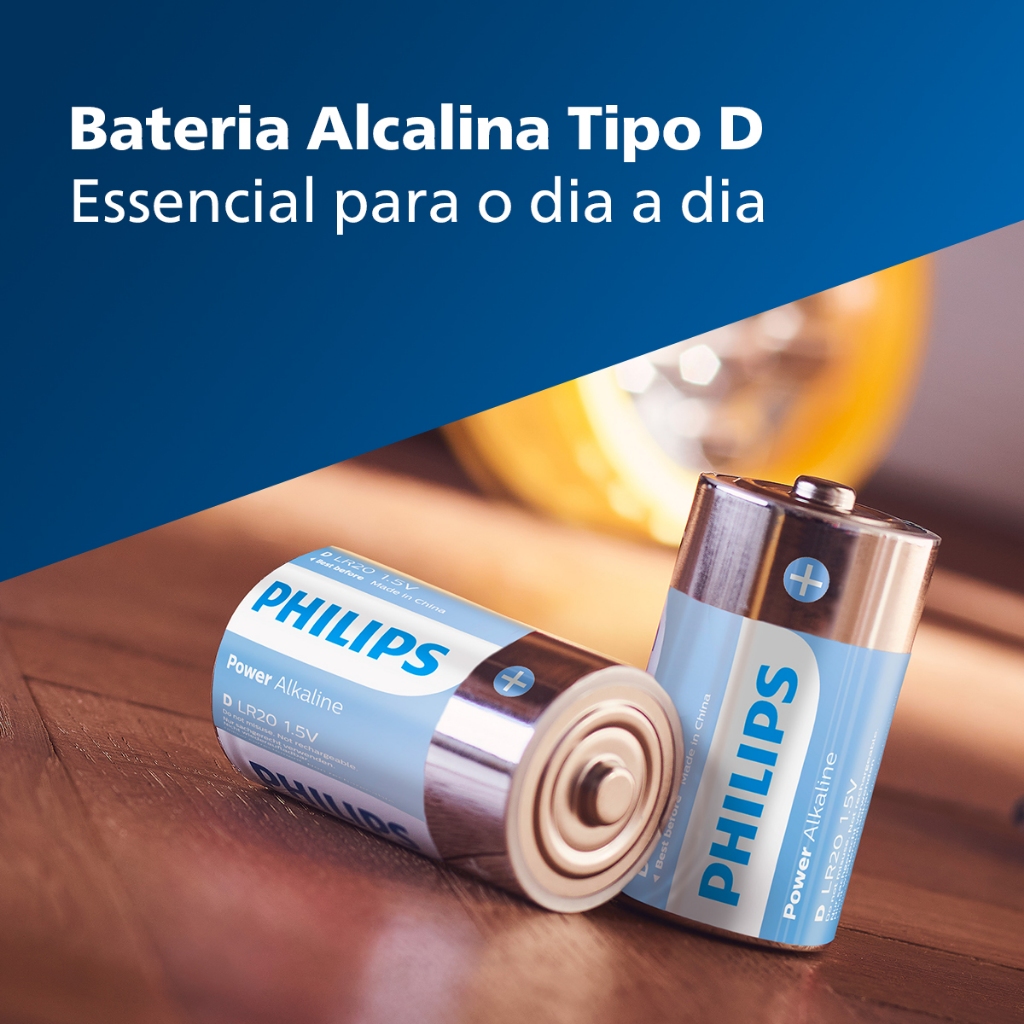 Pilha Alcalina D Philips Bateria Grande LR20 kit 4 unidades