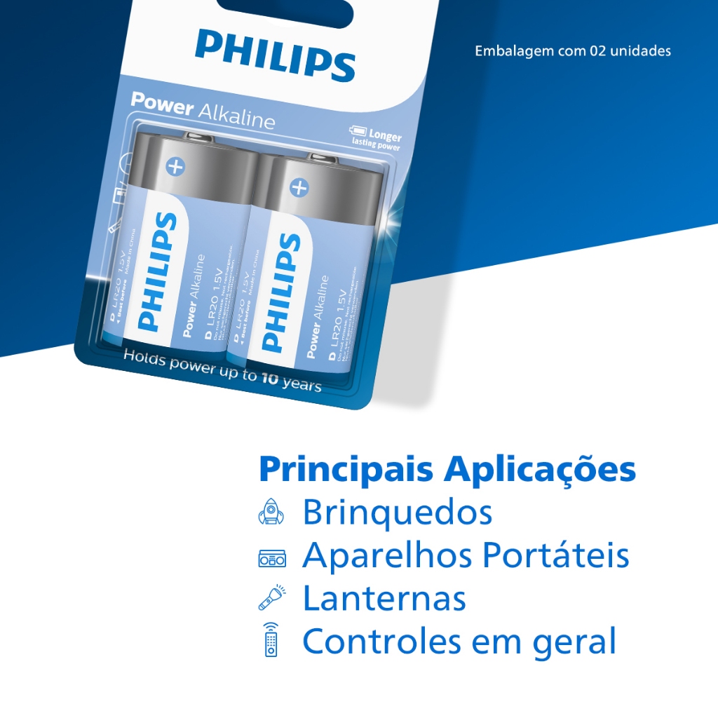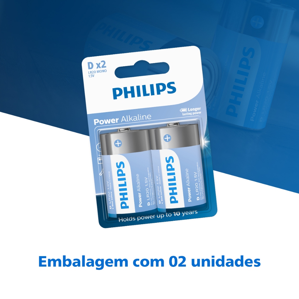 Pilha Alcalina D Philips Bateria Grande LR20 2 unidades