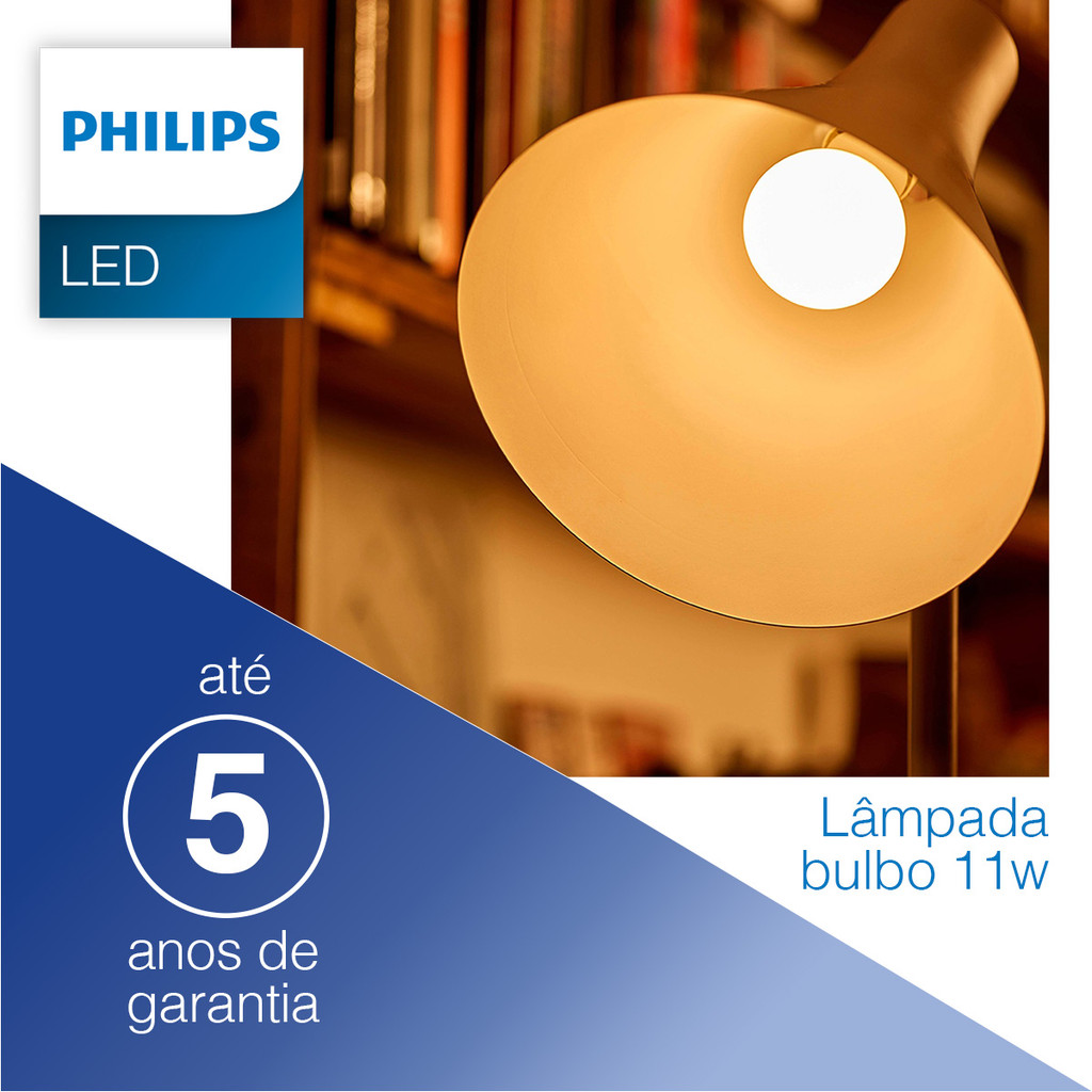 Lampada Bulbo Led Philips 11W bivolt Luz Amarela 3000K E27
