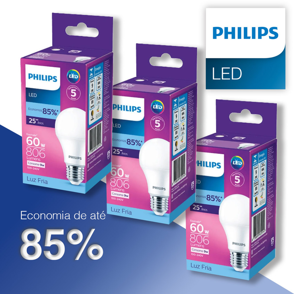 Lampada Bulbo Led Philips 9W bivolt Luz BR Fria 6500K E27