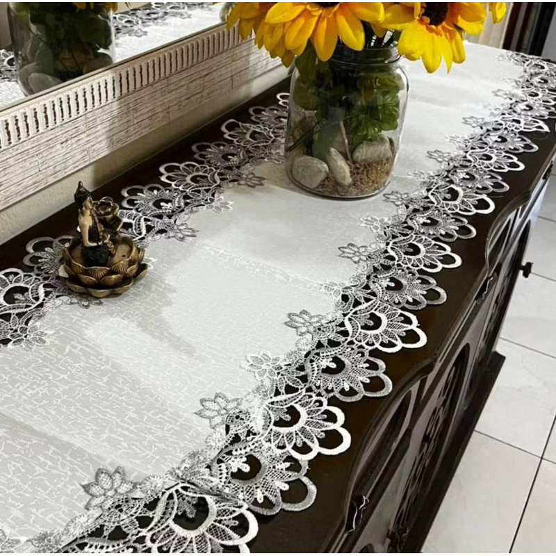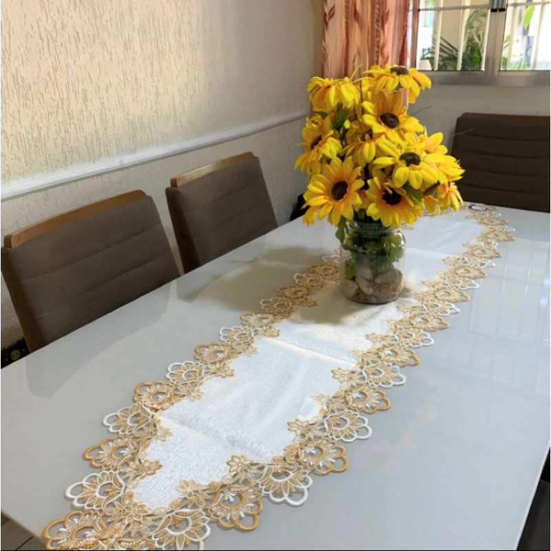 Trilho de Mesa Renda Guipir Luxo 40x1,50cm Bordado Caminho Decorativo