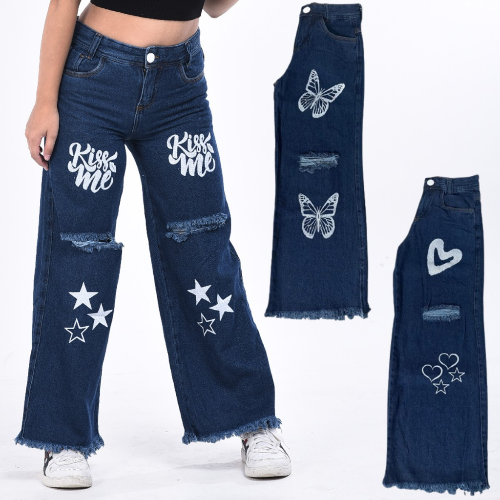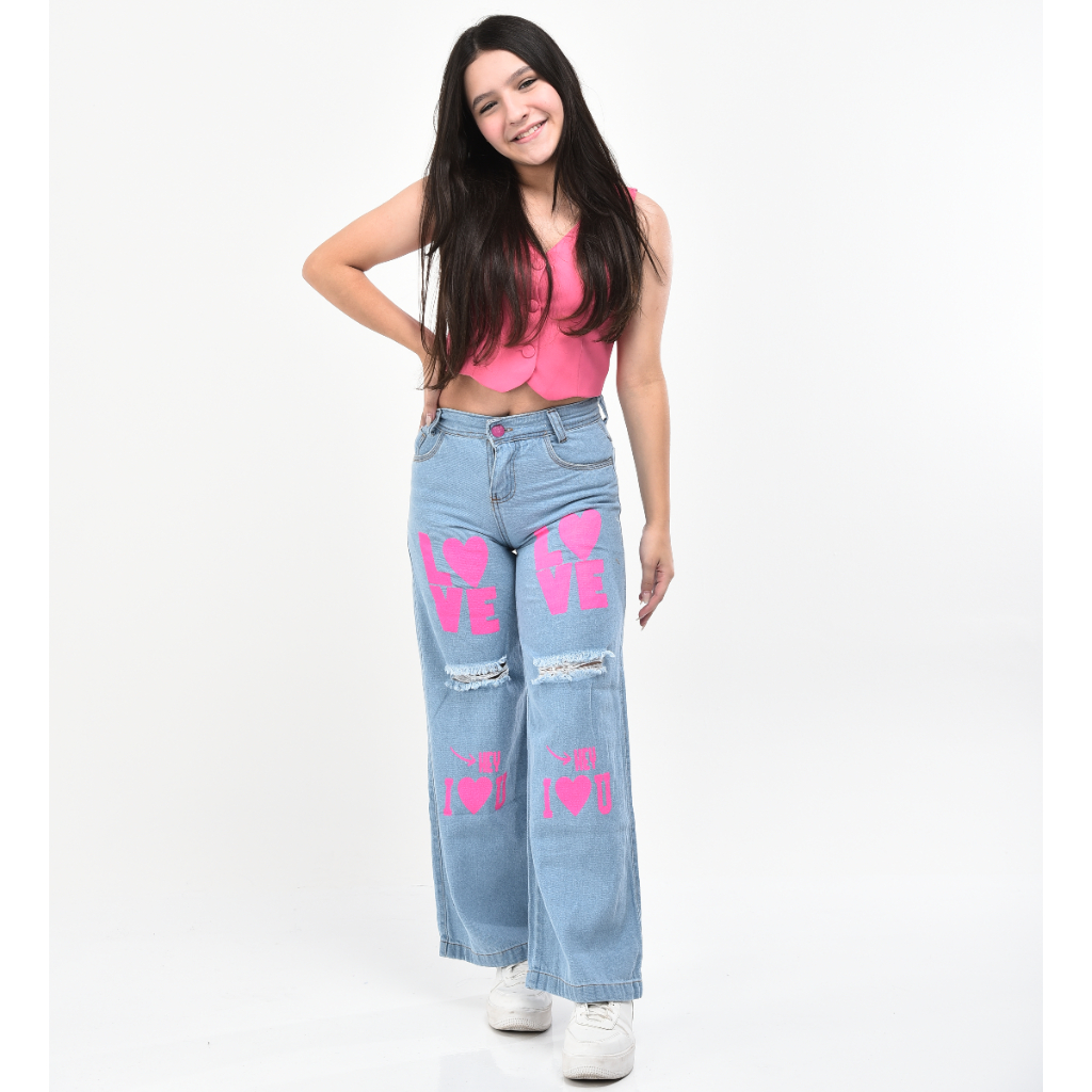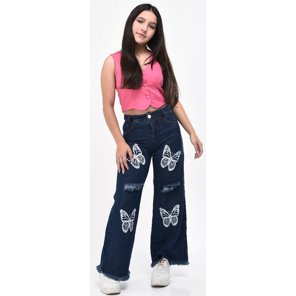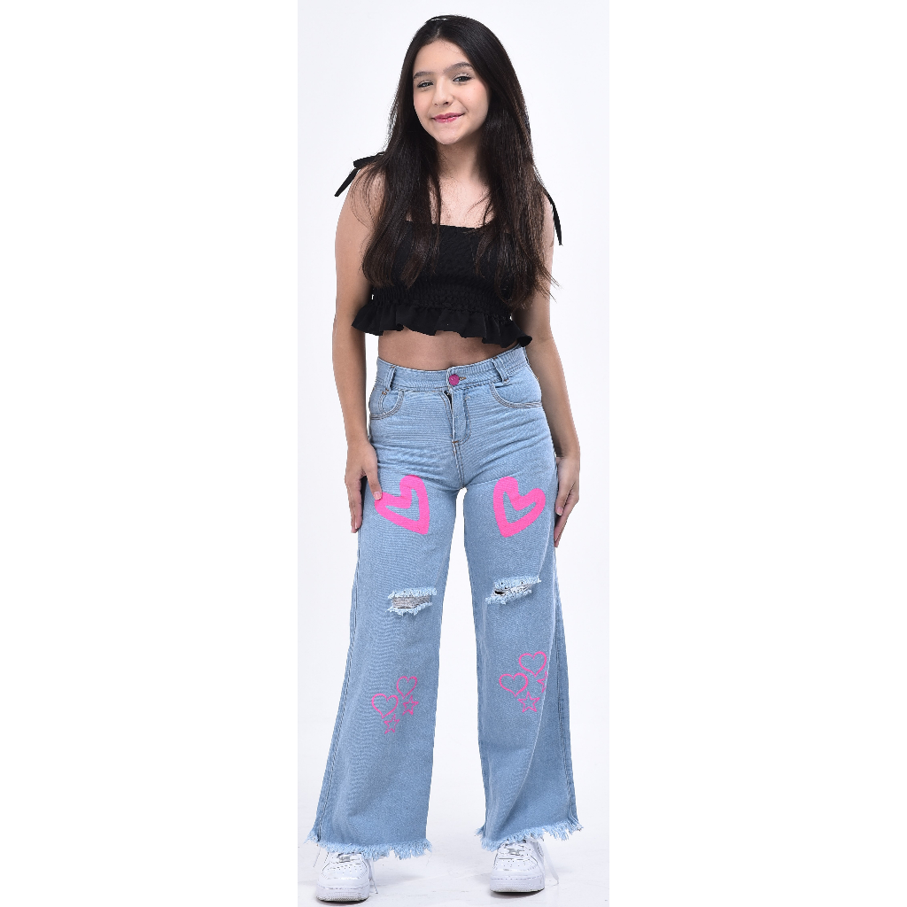Calça feminina wide leg infantil juvenil pantalona jeans