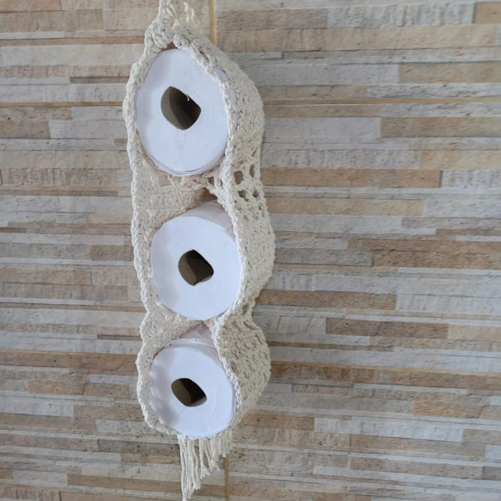 Porta Papel Higiênico Suporte Artesanal em Crochê de Algodão
