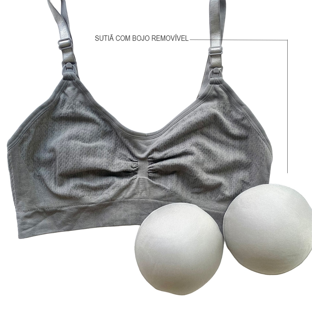 KIT 2 Sutiãs De Amamentação Bojo Removível Reforçado Tecido Confortável