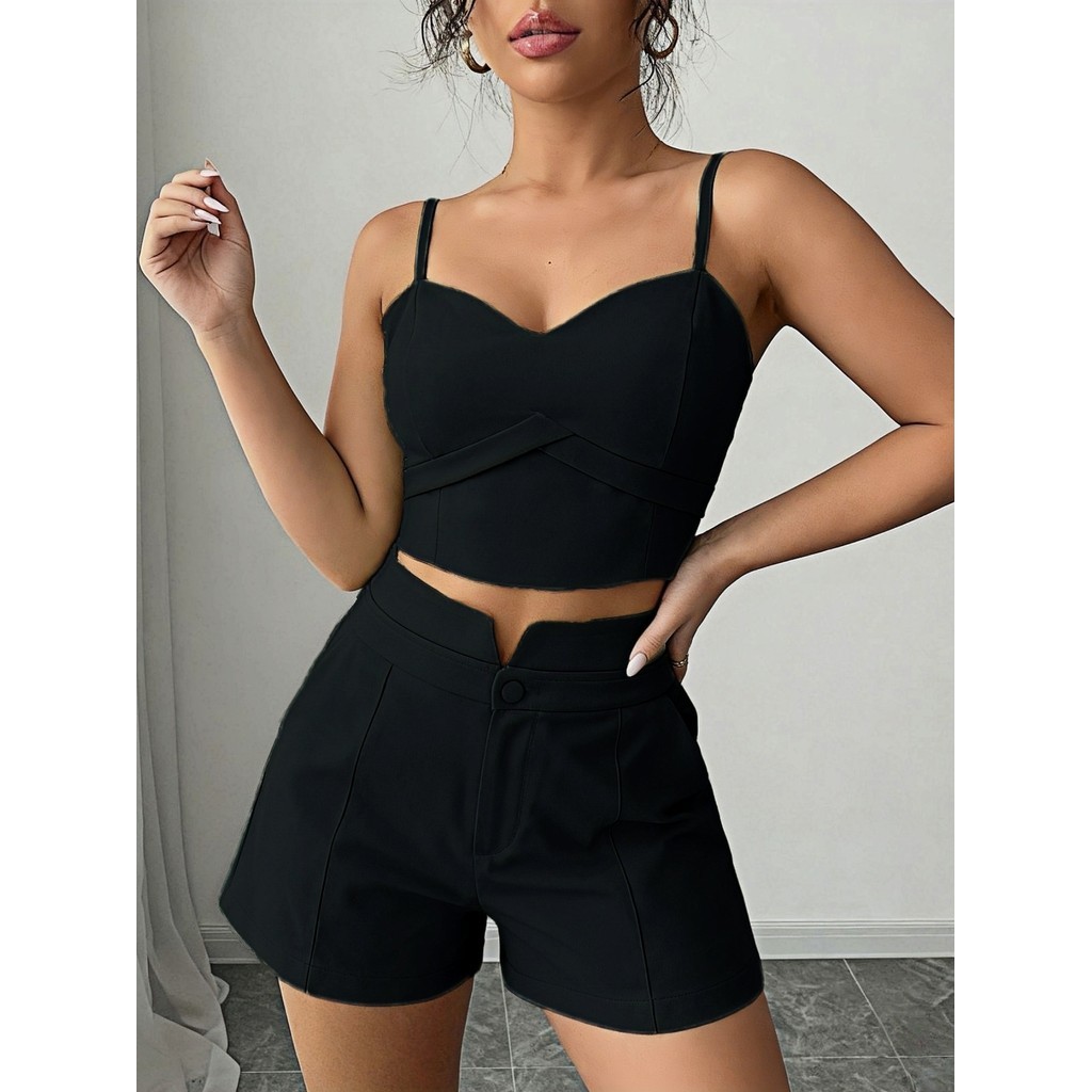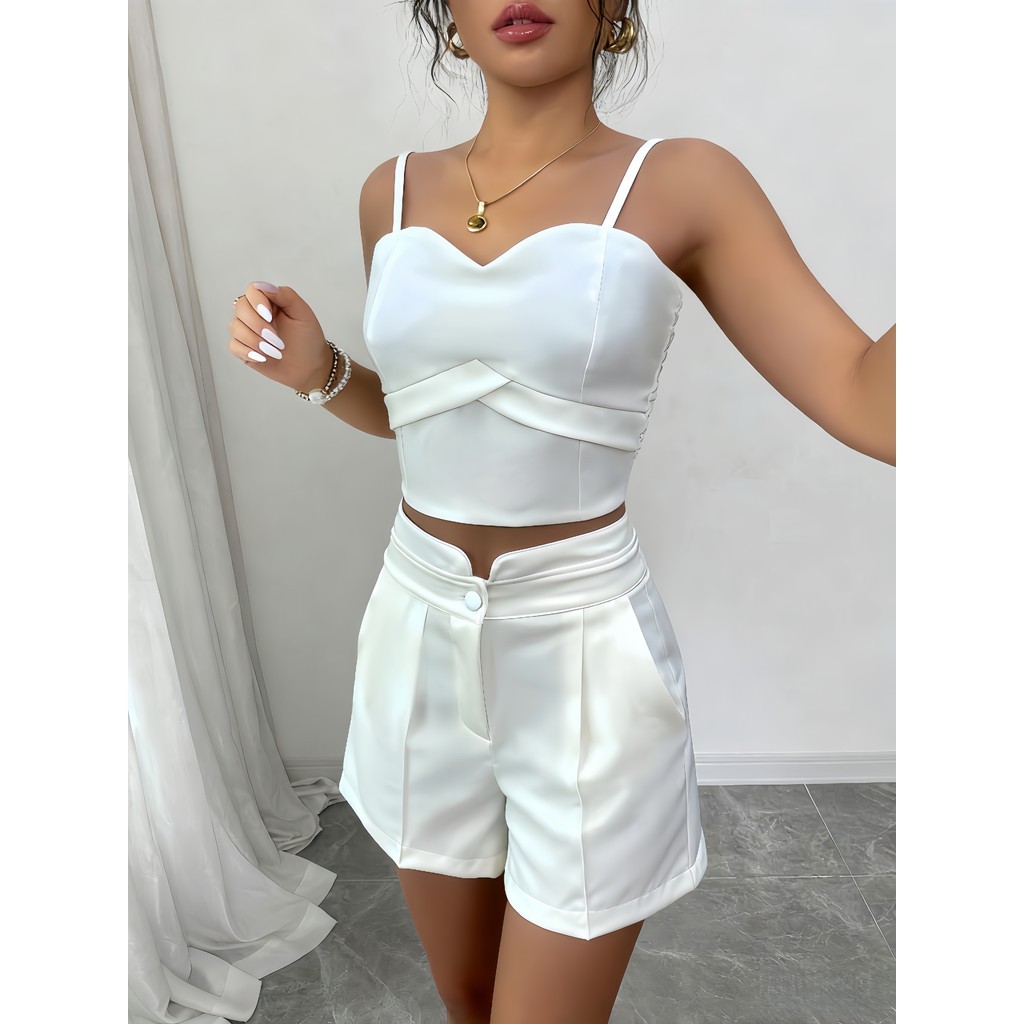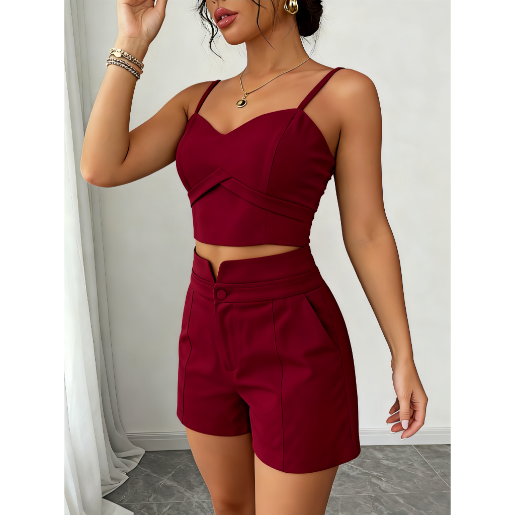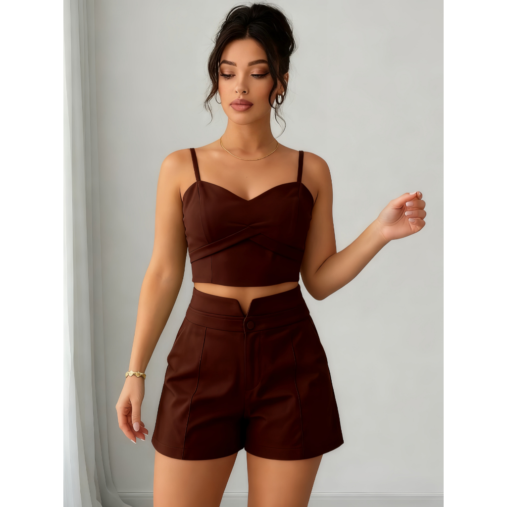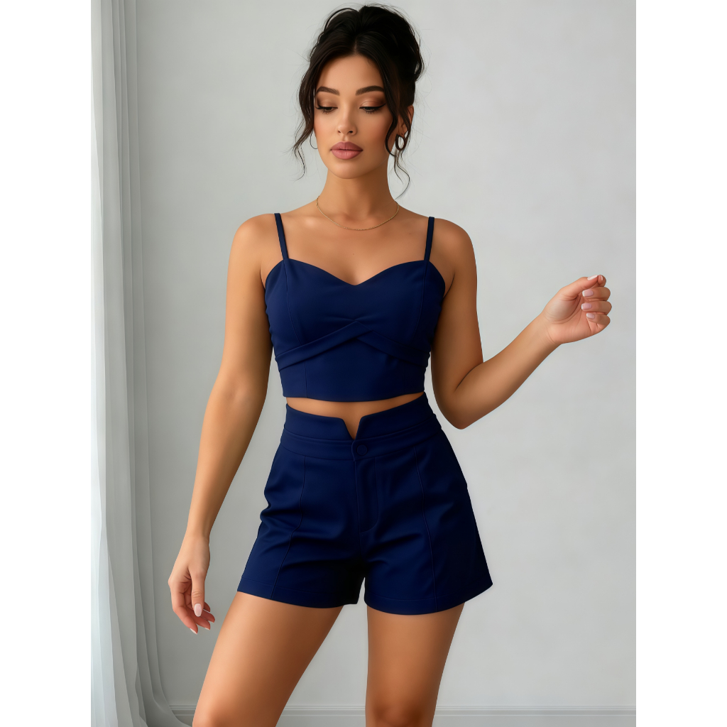 Conjunto Feminino Cropped E Short Social Alfaiataria P M G GG