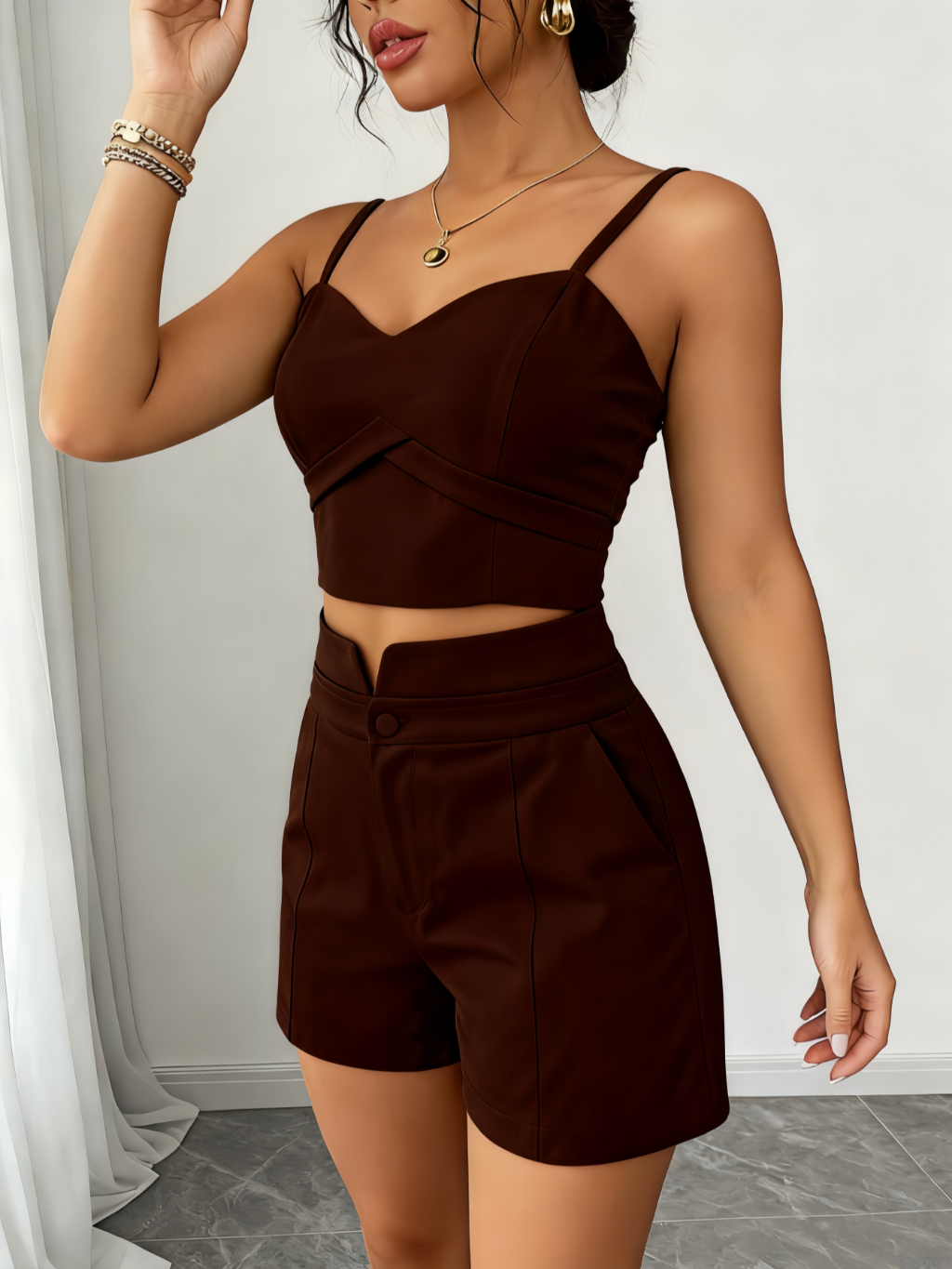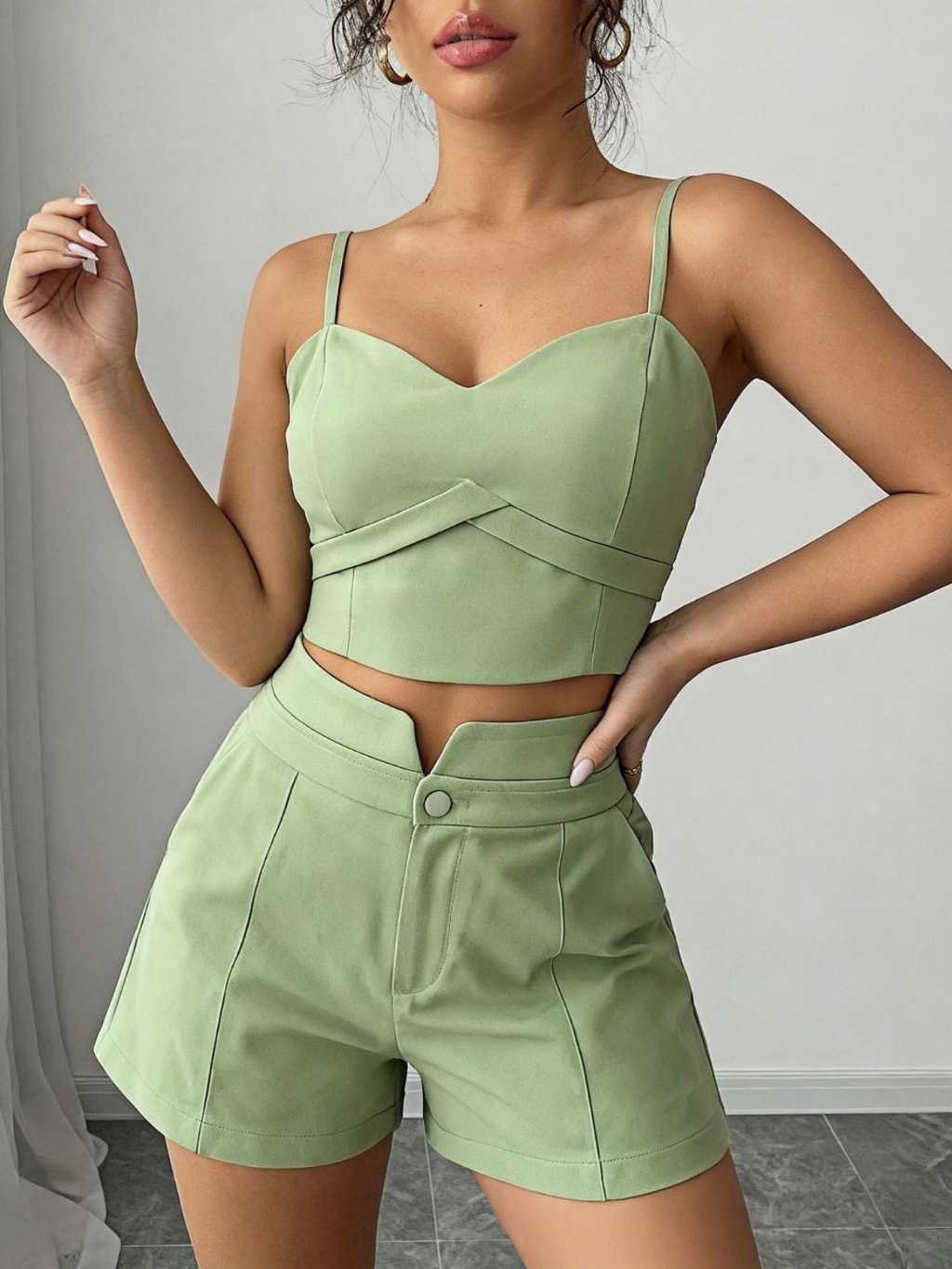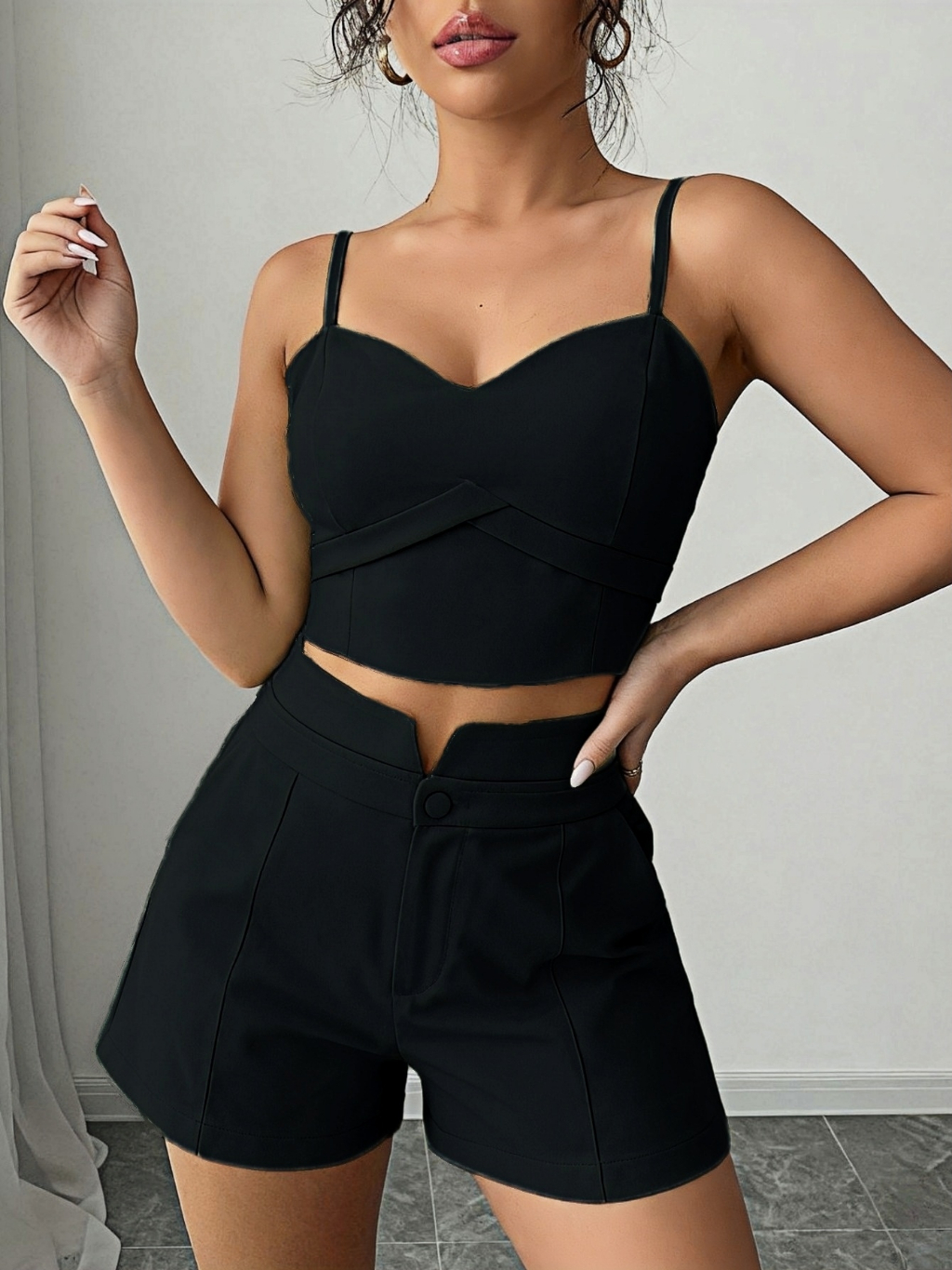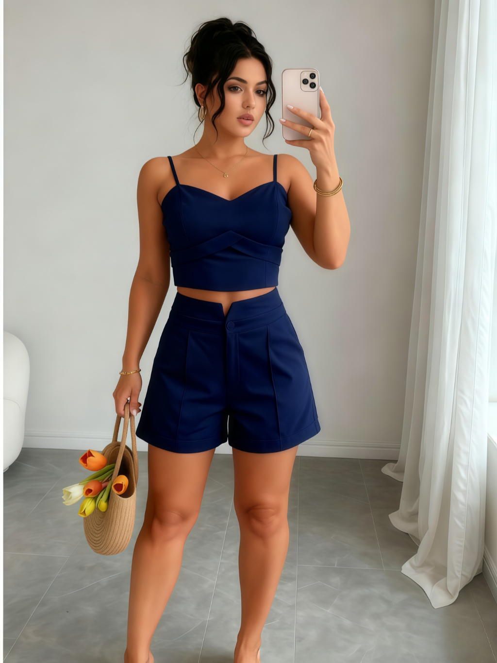 Conjunto Feminino Cropped E Short Social Alfaiataria P M G GG