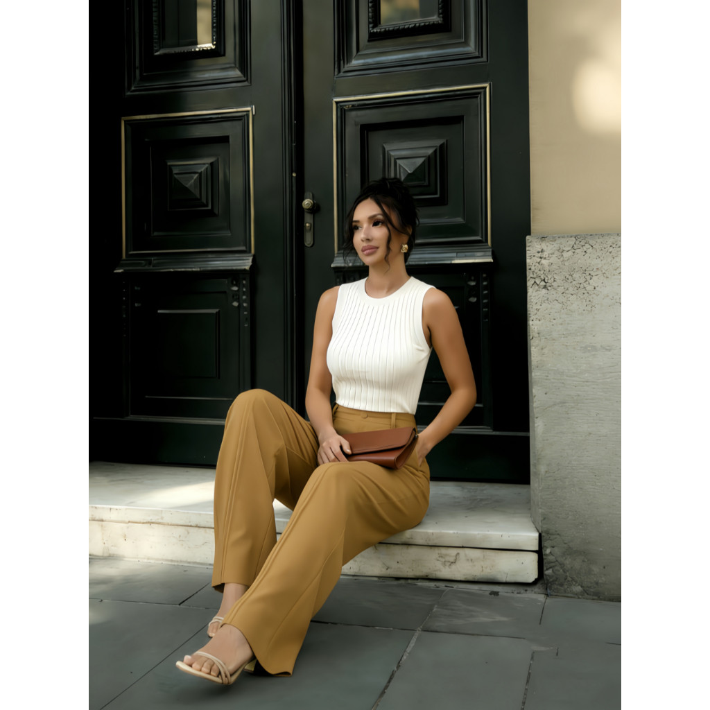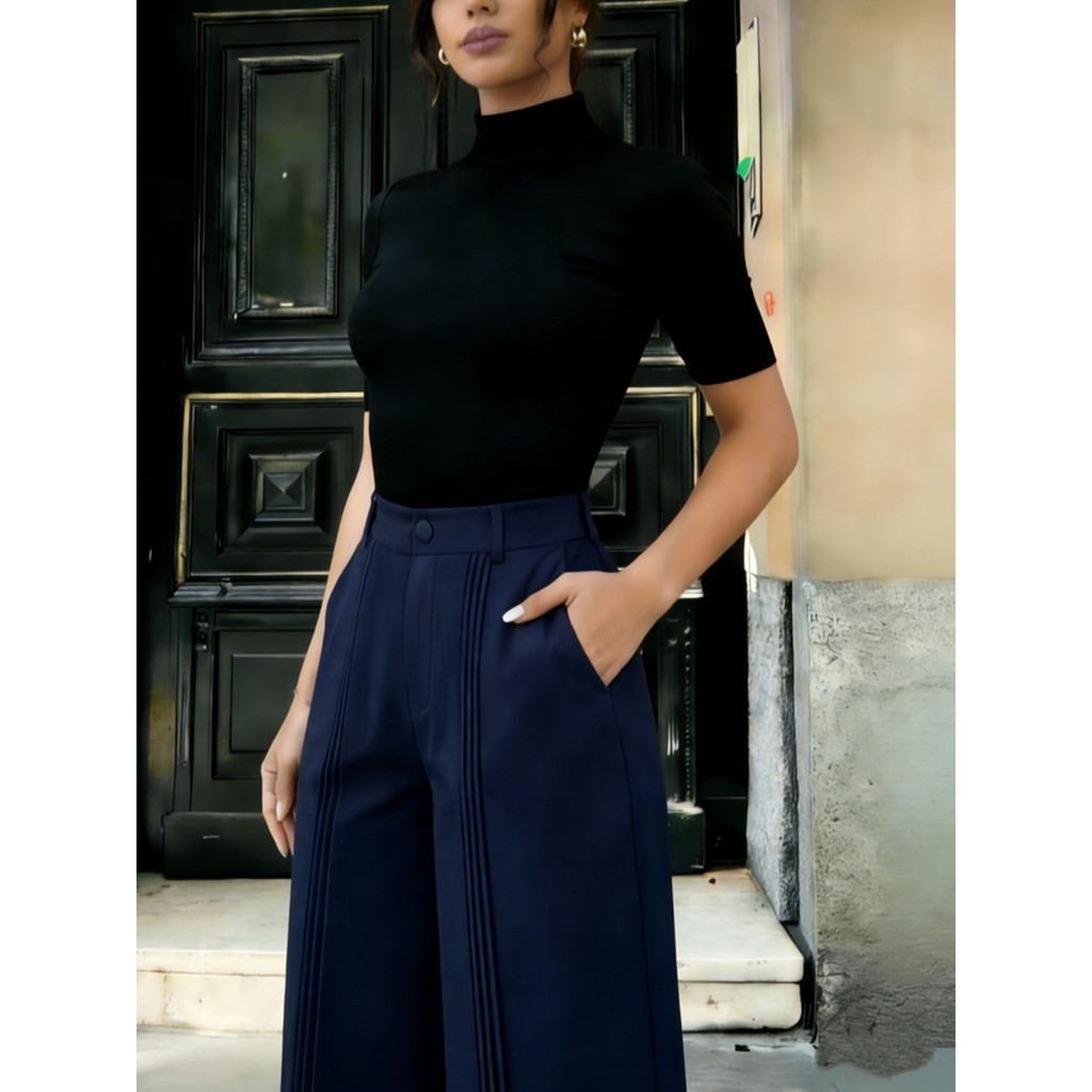 Calça Decorativa De Perna Larga Com Design De Perna Plissada Elegante E Sofisticado P M G