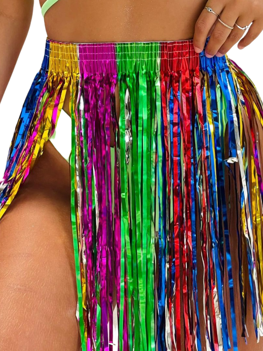 Saia Fitilho Carnaval Festa Fantasia Bloquinho Brilho Metalizado Fita Franja Tendência