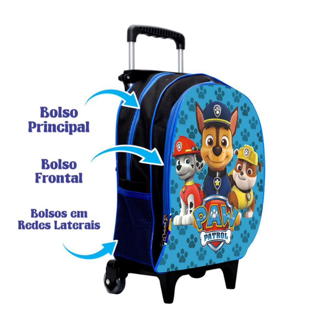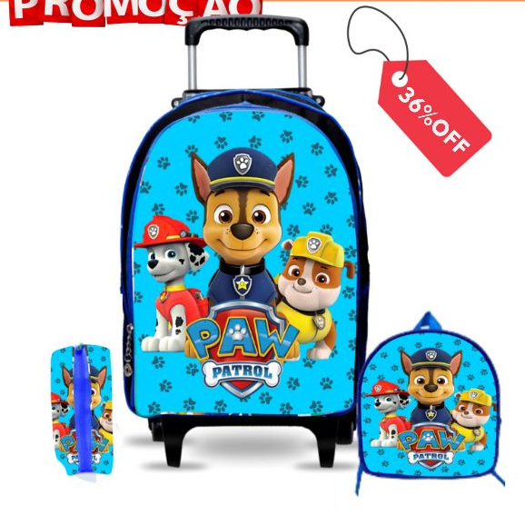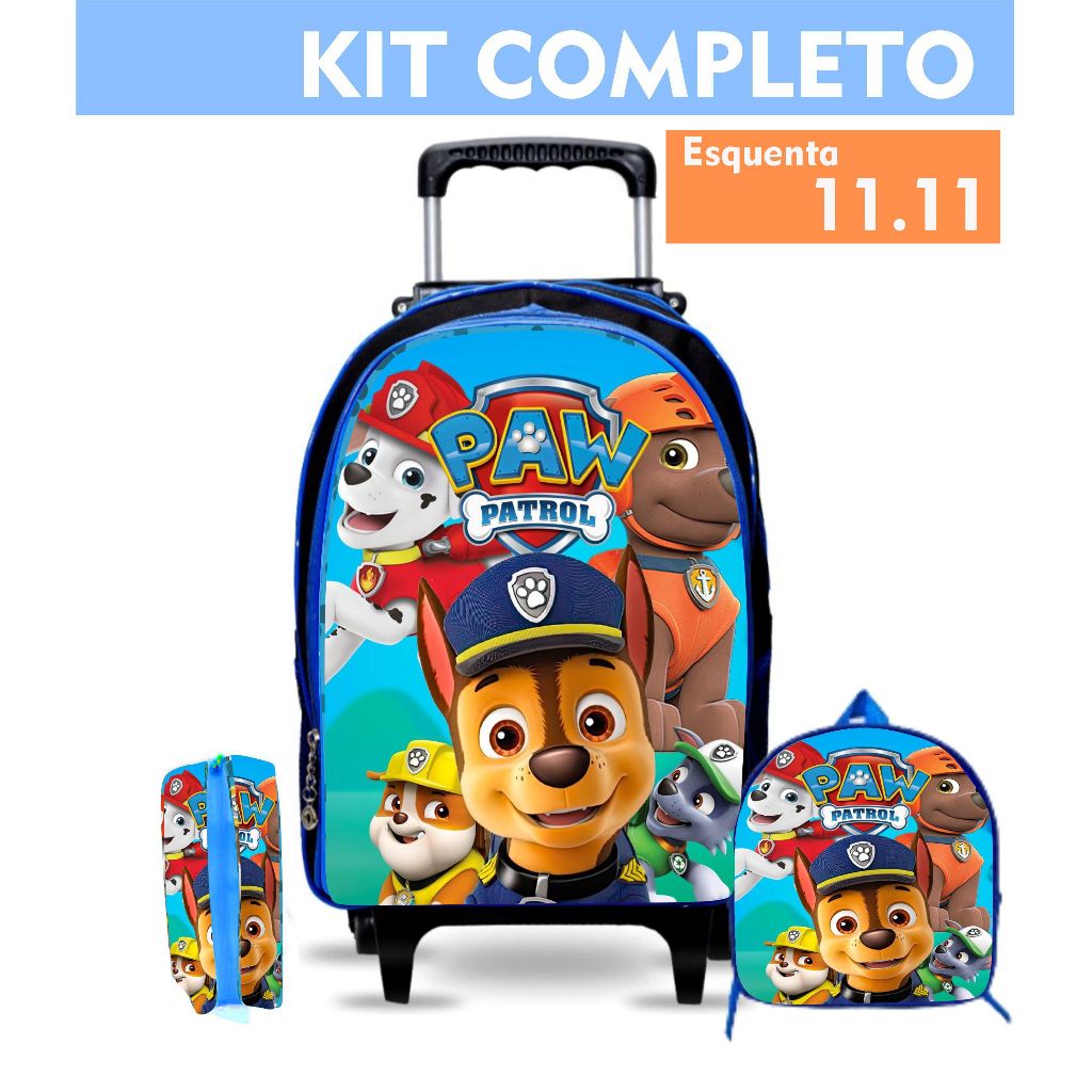 KIT Mochila escolar infantil patrulha canina com lancheira e estojo