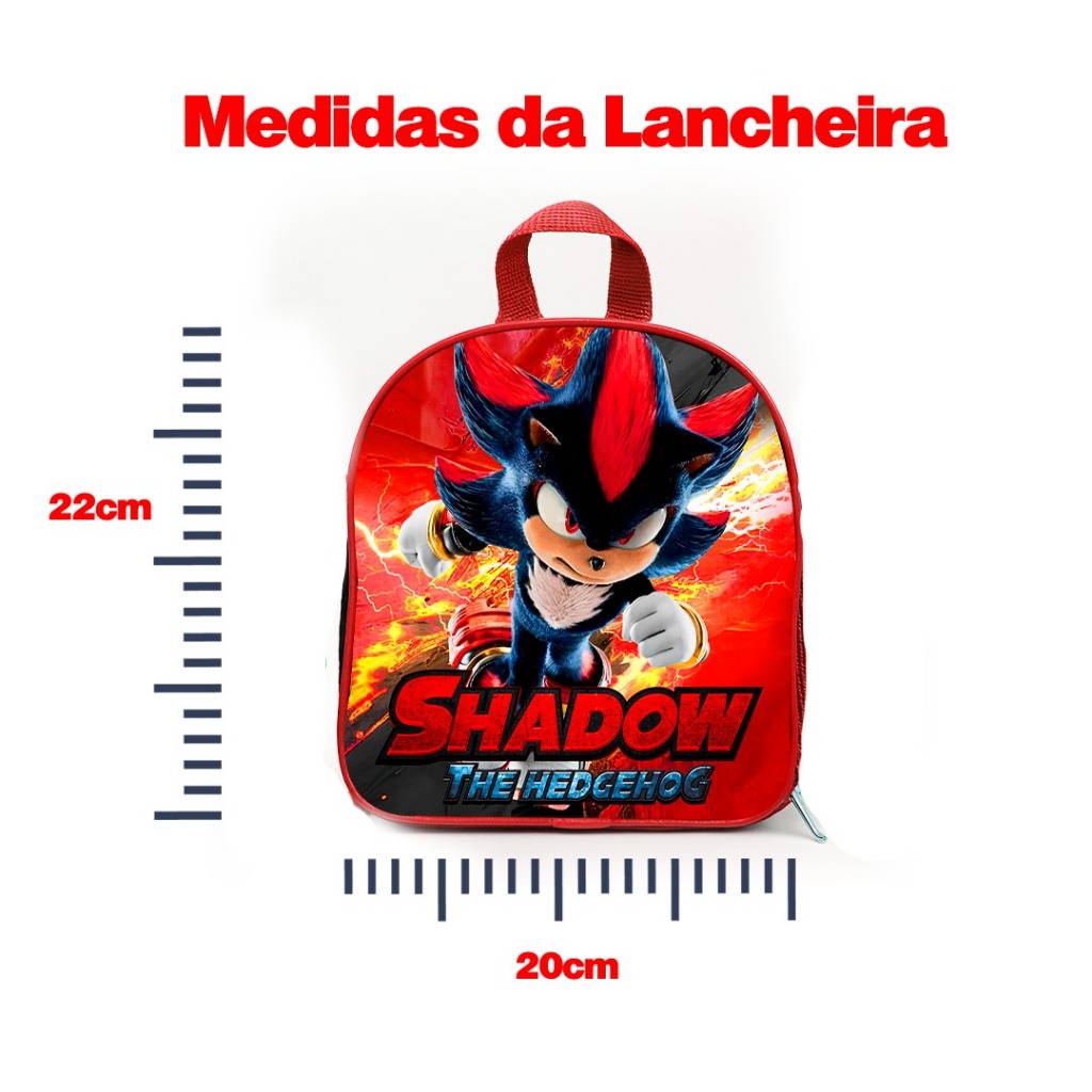 Kit Mochila escolar Infantil Do Sonic Com Lancheira e Estojo