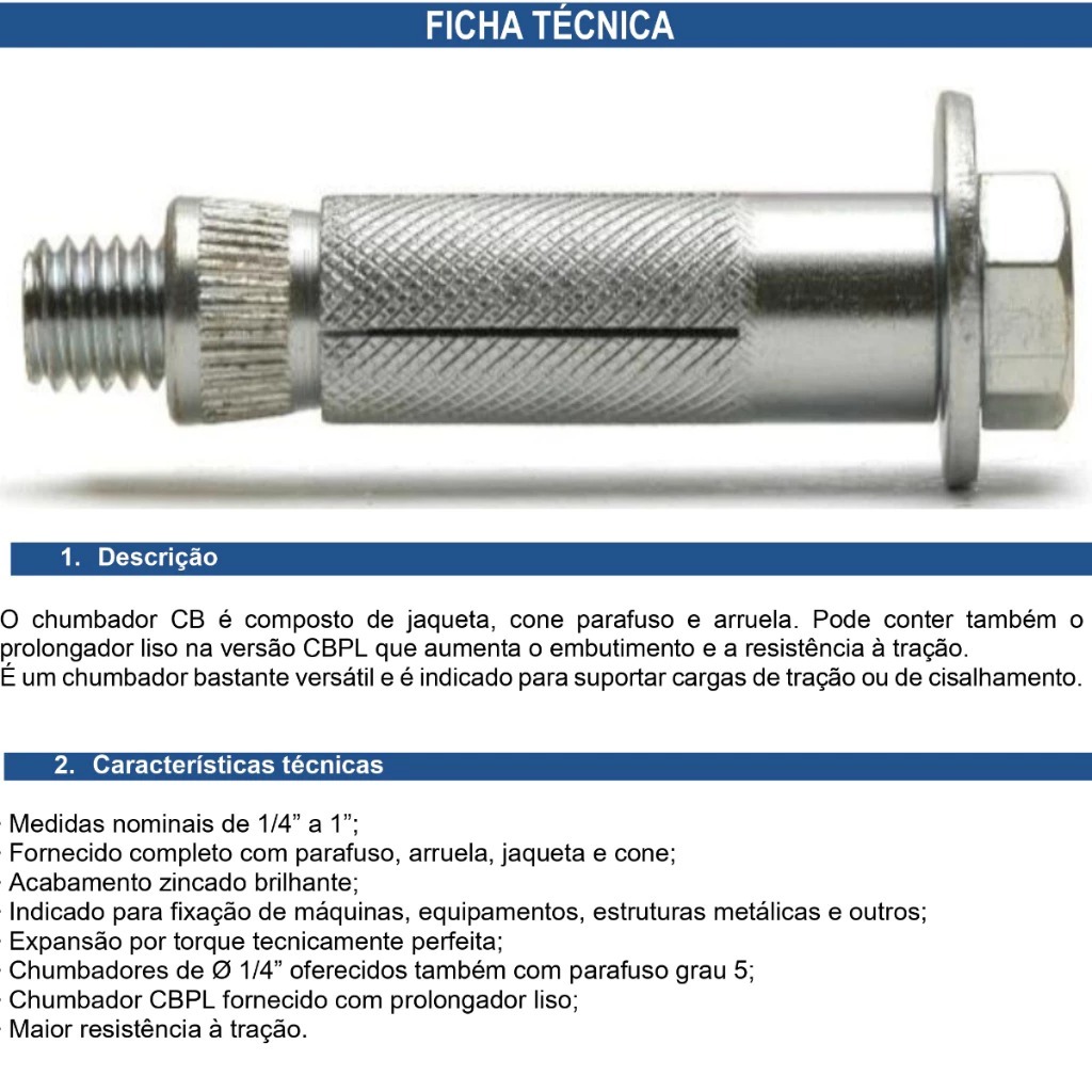 Kits Parabolt Chumbador 1/4" x 2" Fixação Pesada em Concreto – Bucha com Parafuso Aço Zincado