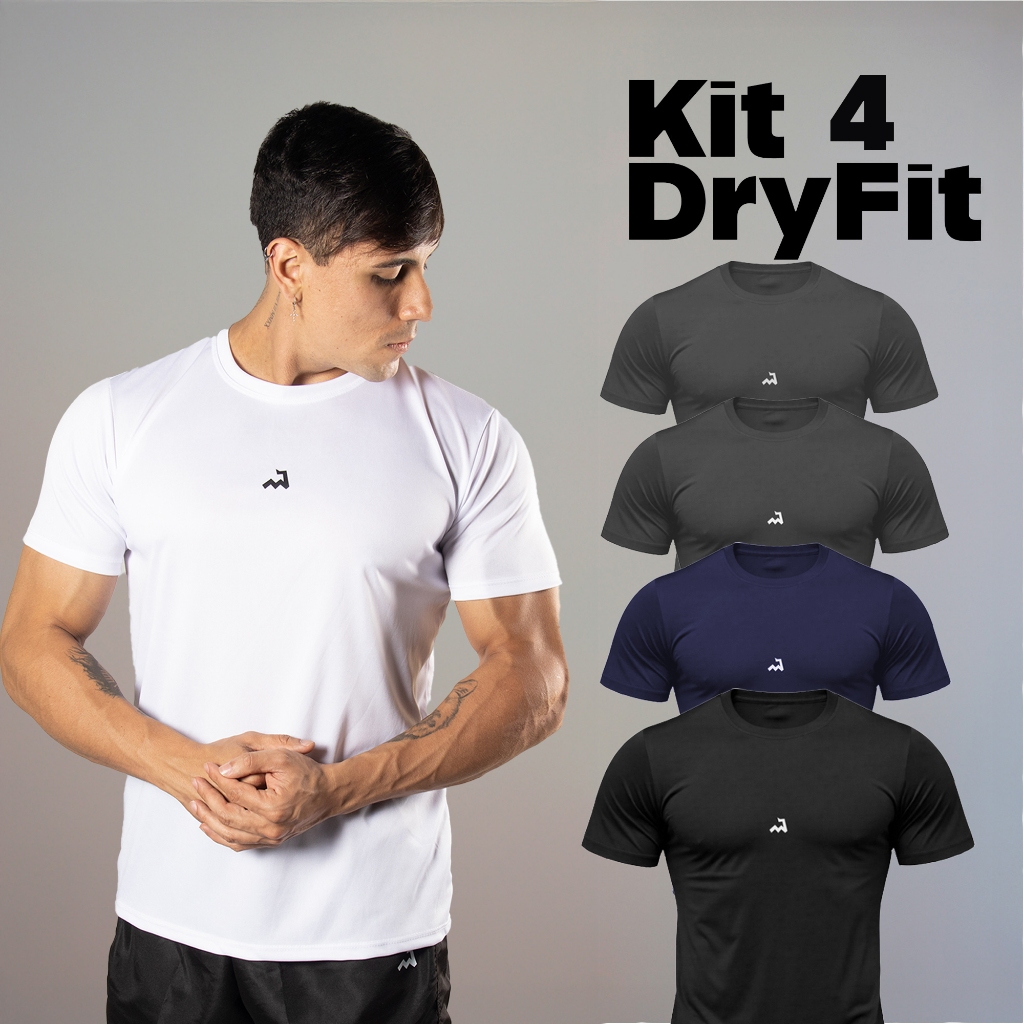 Kit 4 Camiseta Dry Fit Masculina Fitness Academia Corrida CrossFit Poliester Premium Esporte Anti Odor