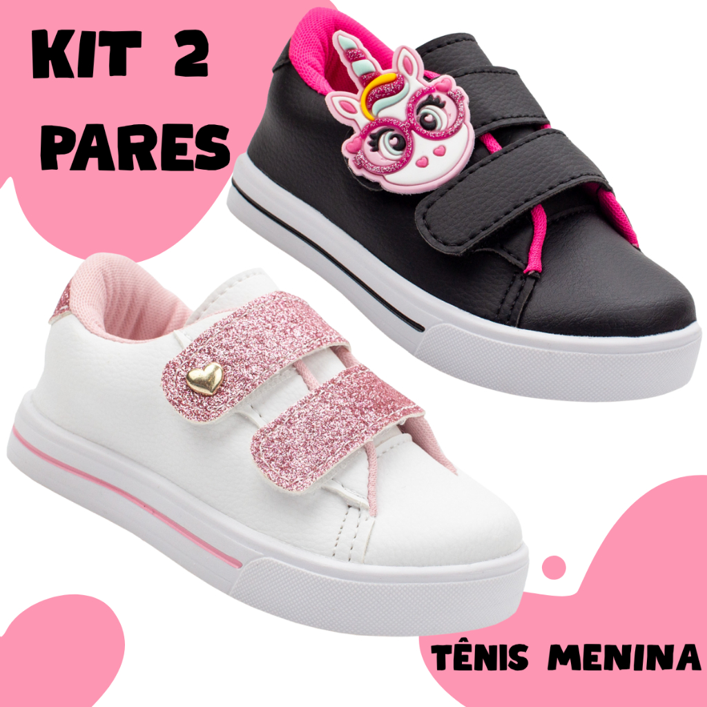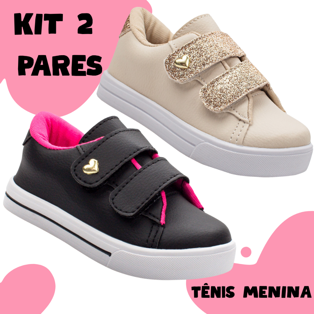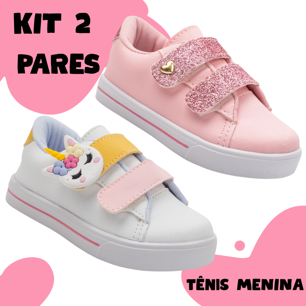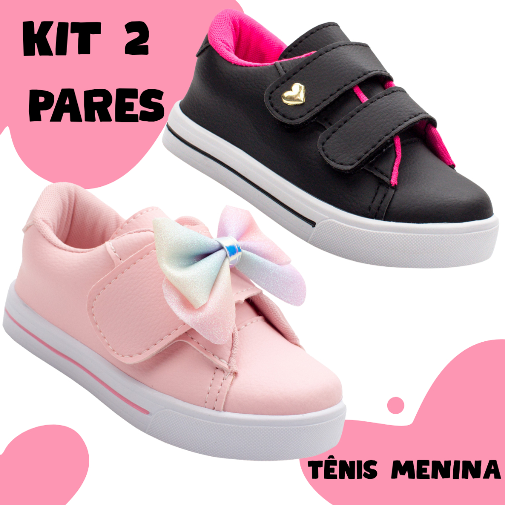 Kit 2 Pares Tênis Slip Infantil Menina Brilho Casual Delicado Confortável Escolar Promoção 20 ao 27