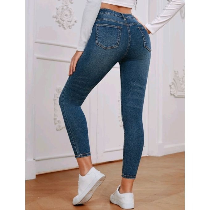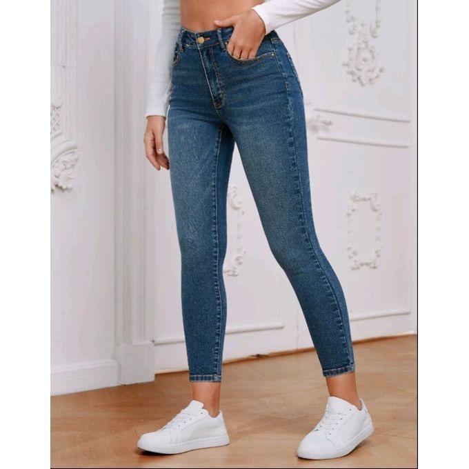 Calça Jeans Feminina Levanta Bumbum C Lycra Cintura Alta Azul Classica Premium - Oferta Relampago!