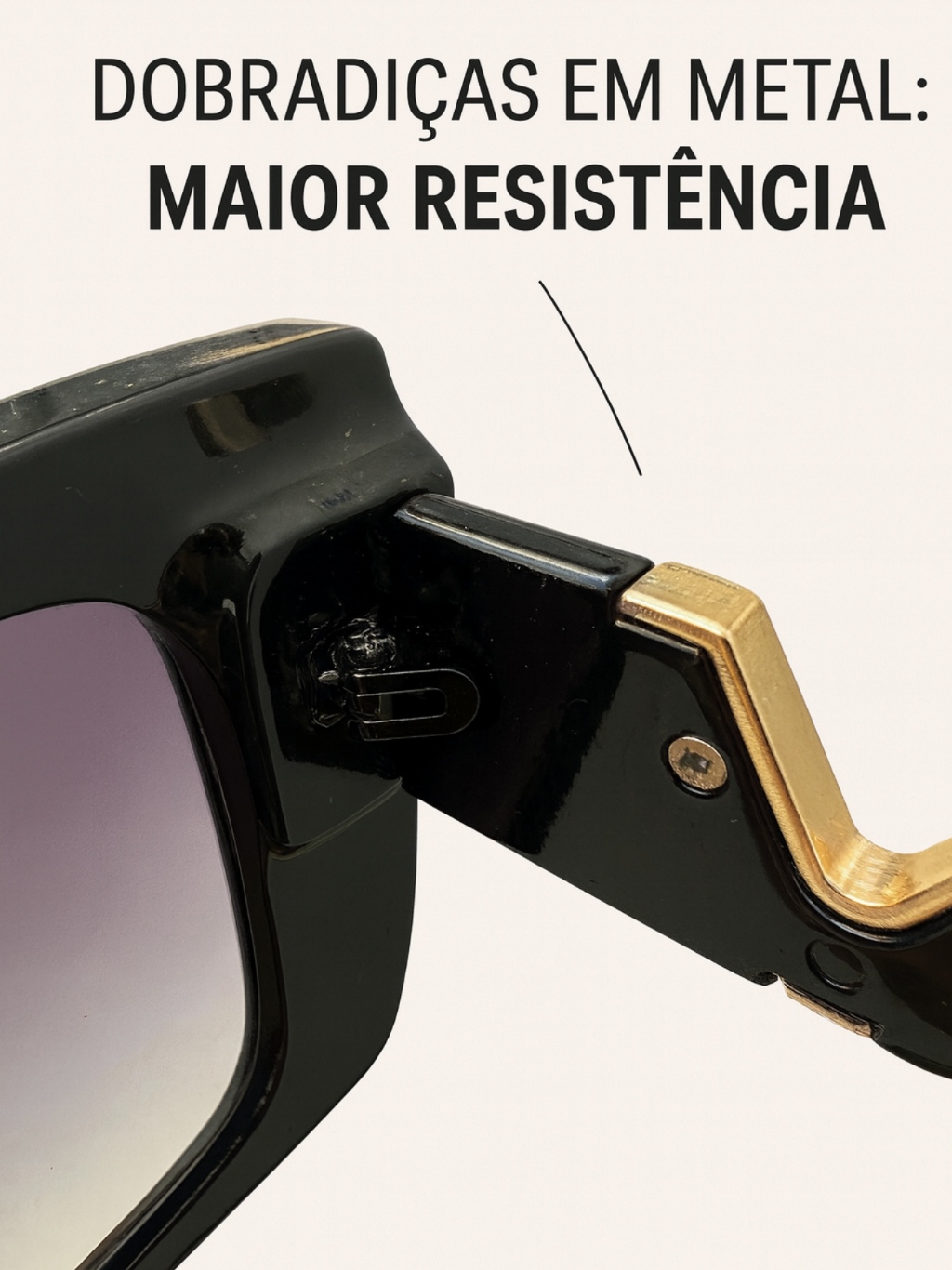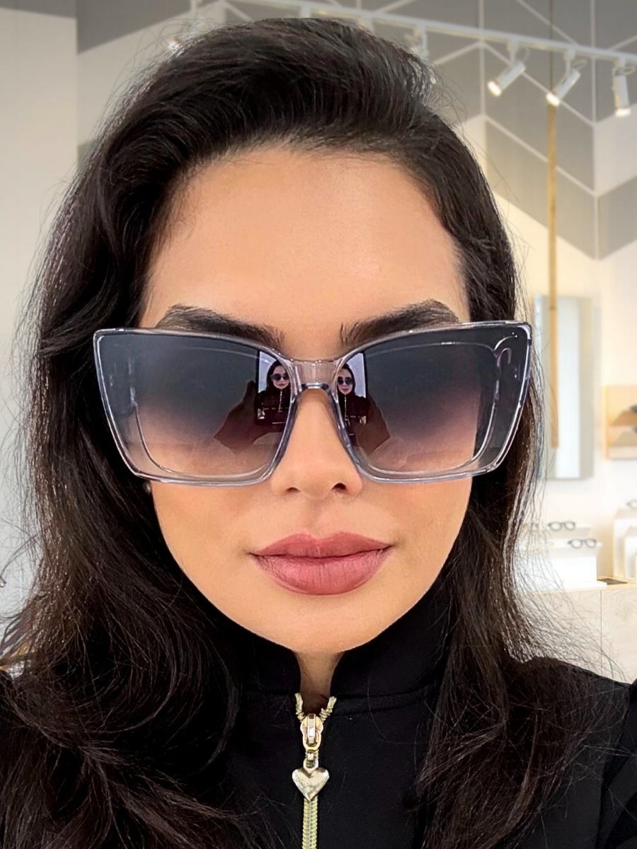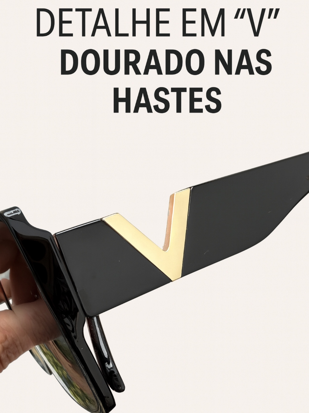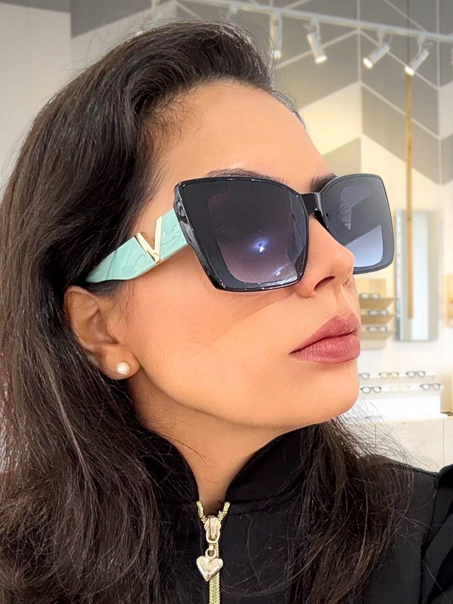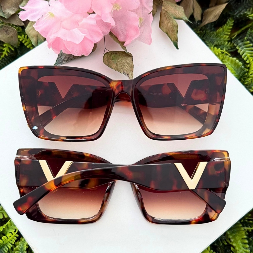 Óculos de Sol Feminino Gatinho Oversized Luxo Proteção UV400 Armação Resina Haste Dourada Estilo Moderno