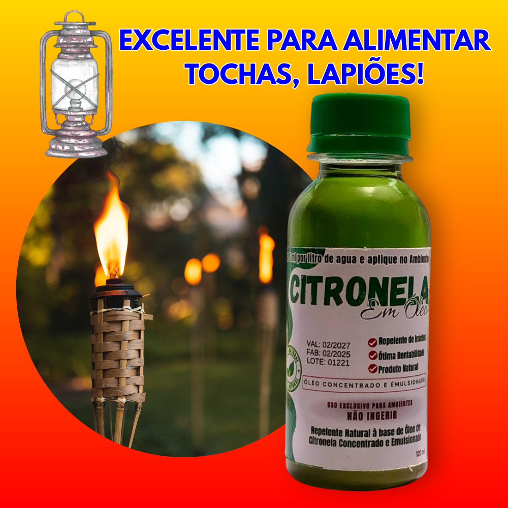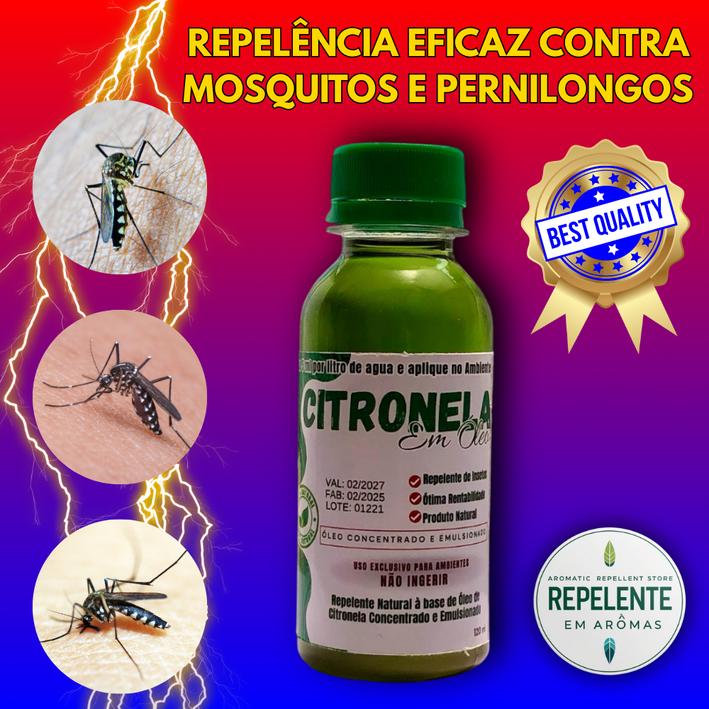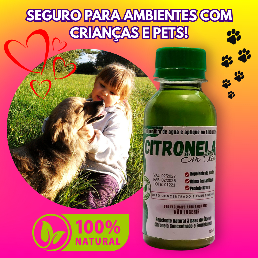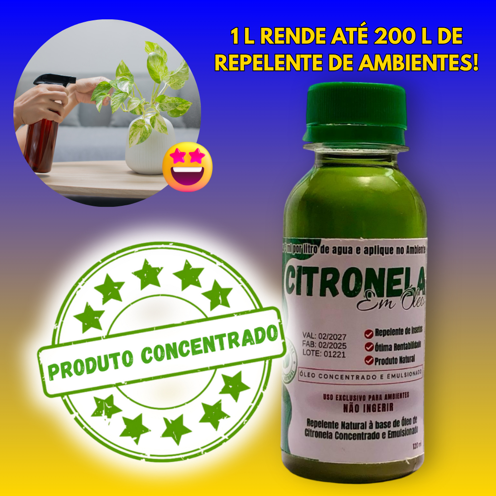 Repelente - óleo de Citronela Concentrado 1 x 120ml + 1 Spray - faz 24 L de Repelente de Ambientes
