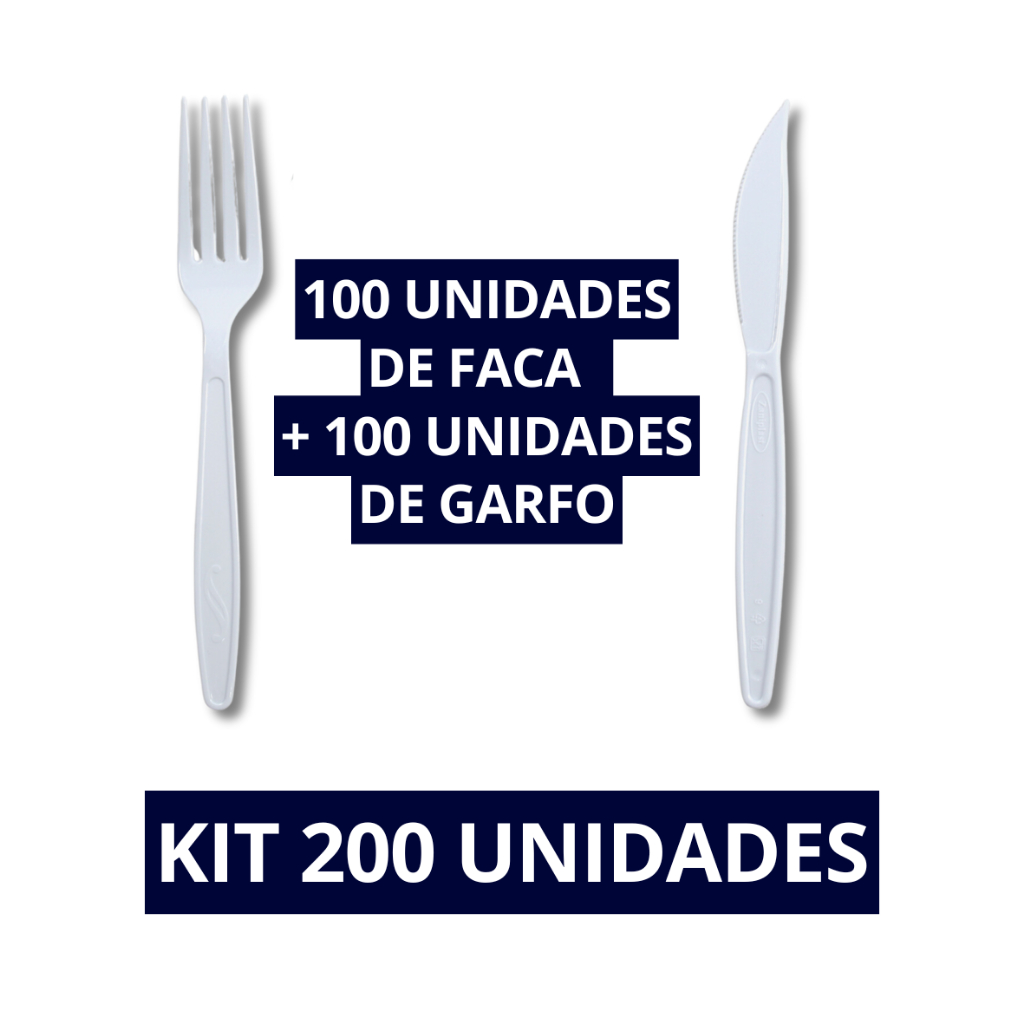Kit 200 Unid Garfinho E Faca Descartável Resistente P/ Festas 100 Garfos + 100 Facas Restaurante