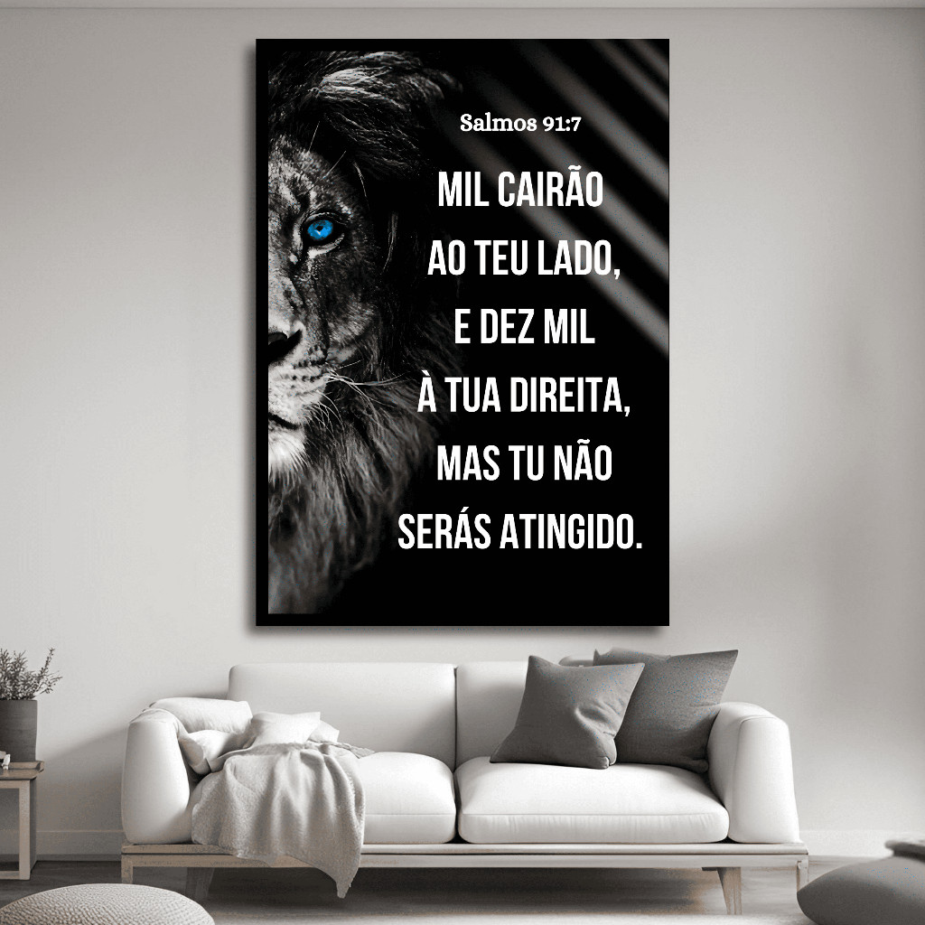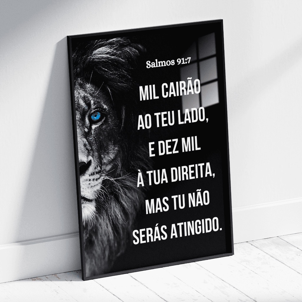 Quadro Decorativo Religioso Leão de Judá Salmos 91 Bíblia Fé Sala Quarto