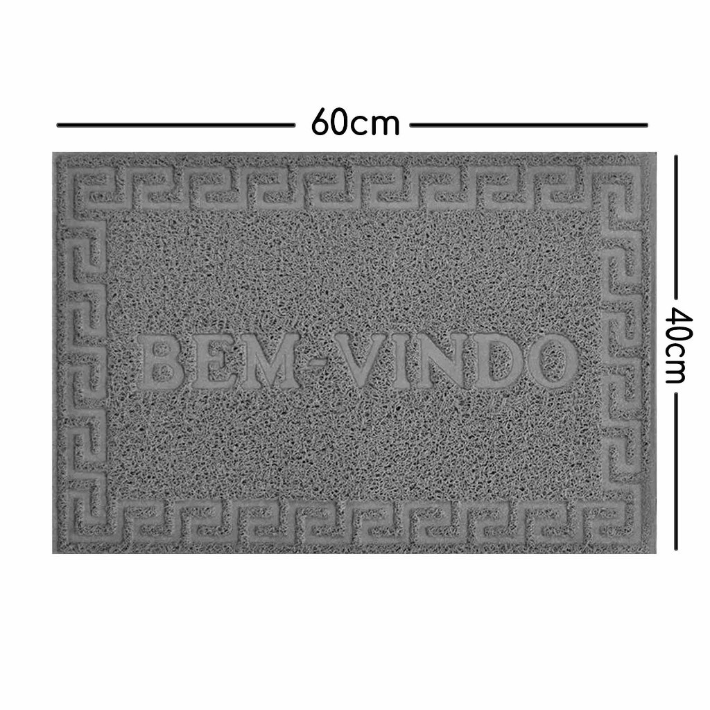 Tapete De Porta Bem Vindo Em Pvc 40x60cm Modelo Capacho Emborrachado Antiderrapante Cinza