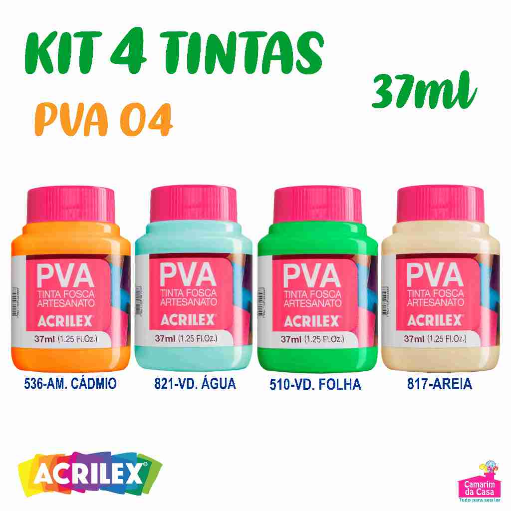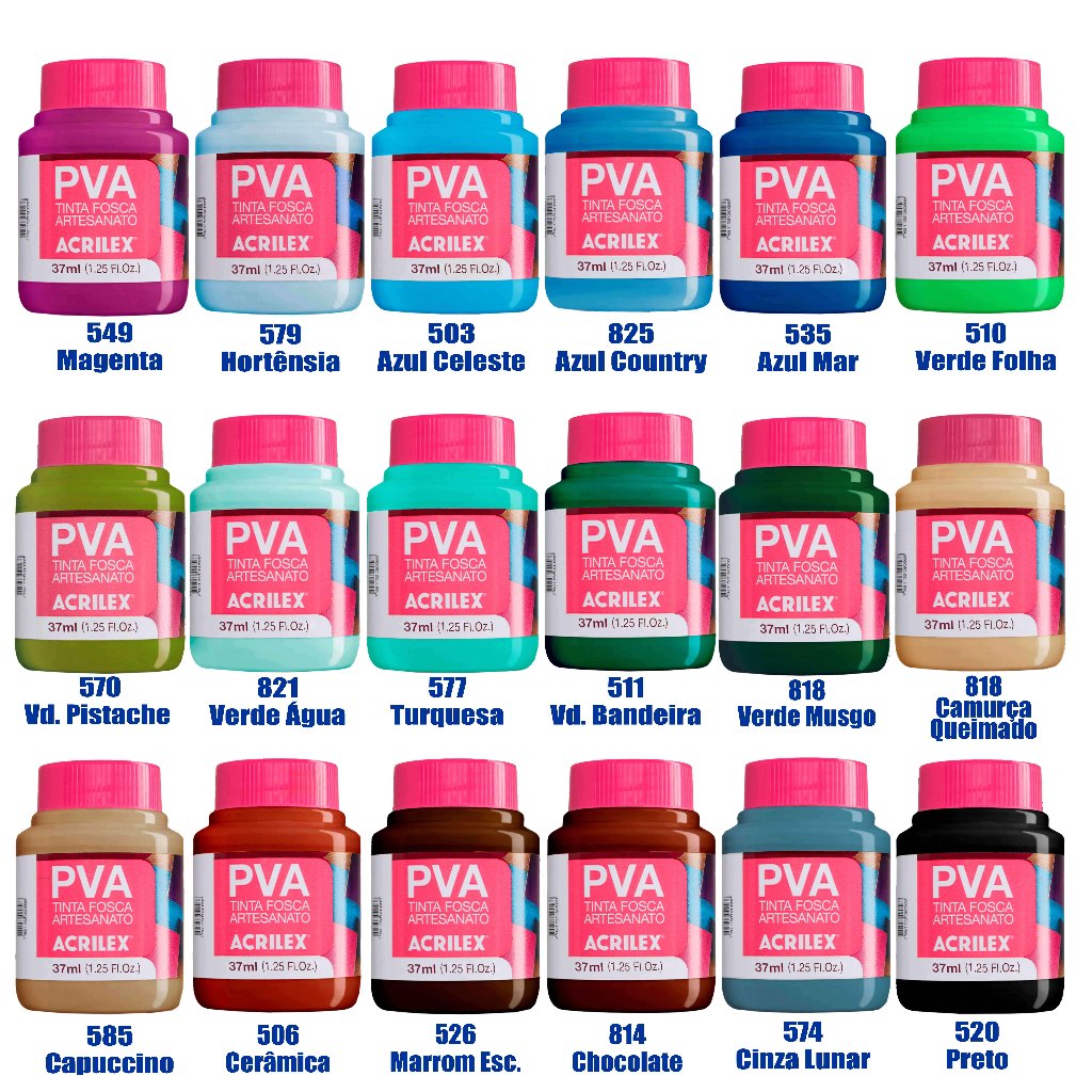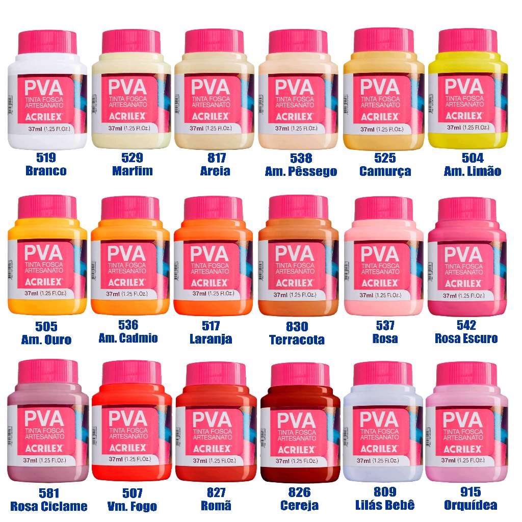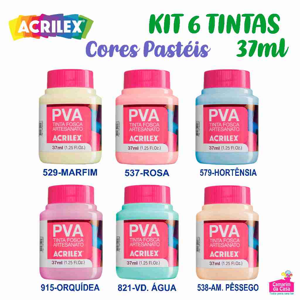 Kit com Tinta PVA Fosca Tubo com 37ml cada Acrilex Ideal p/ Madeira Cores Diversas Escolha o seu