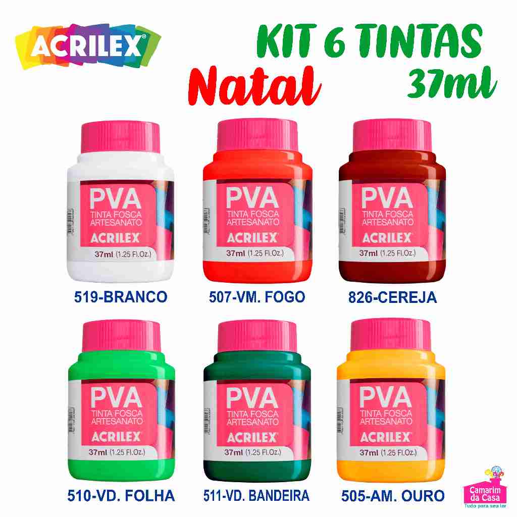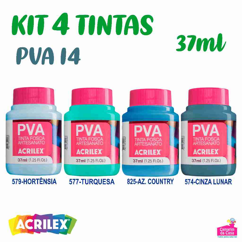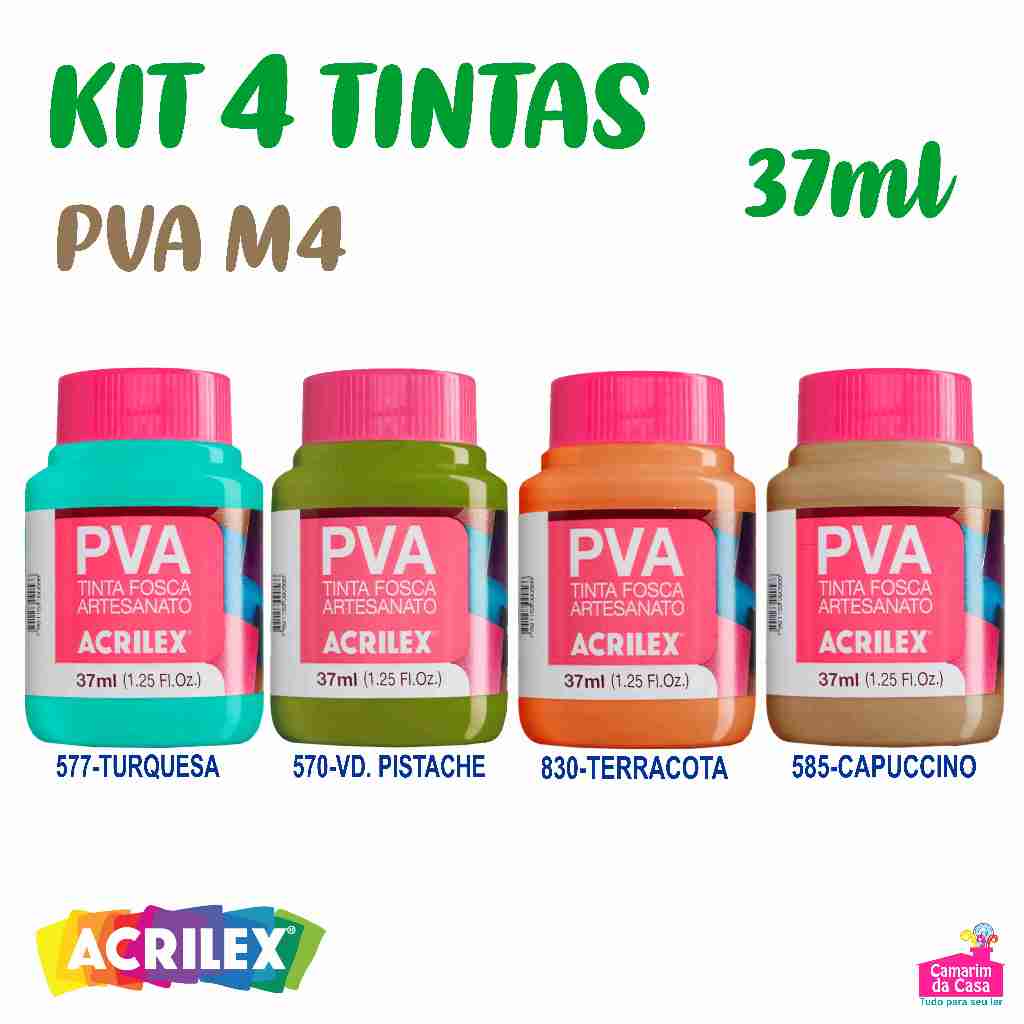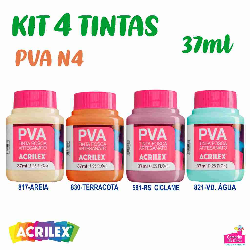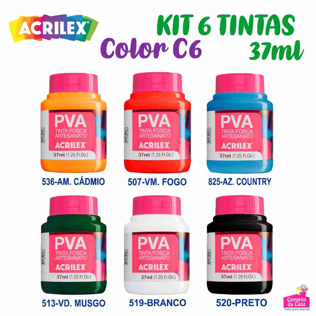 Kit com Tinta PVA Fosca Tubo com 37ml cada Acrilex Ideal p/ Madeira Cores Diversas Escolha o seu