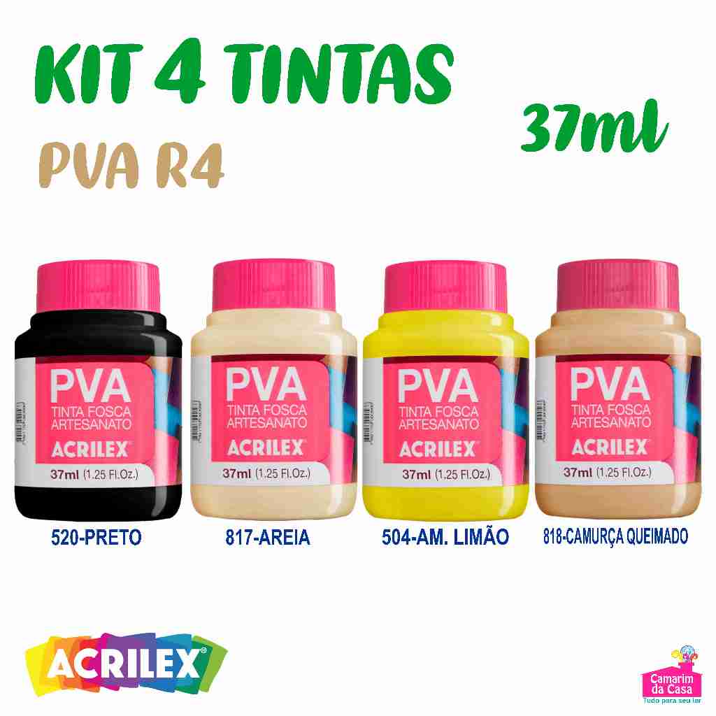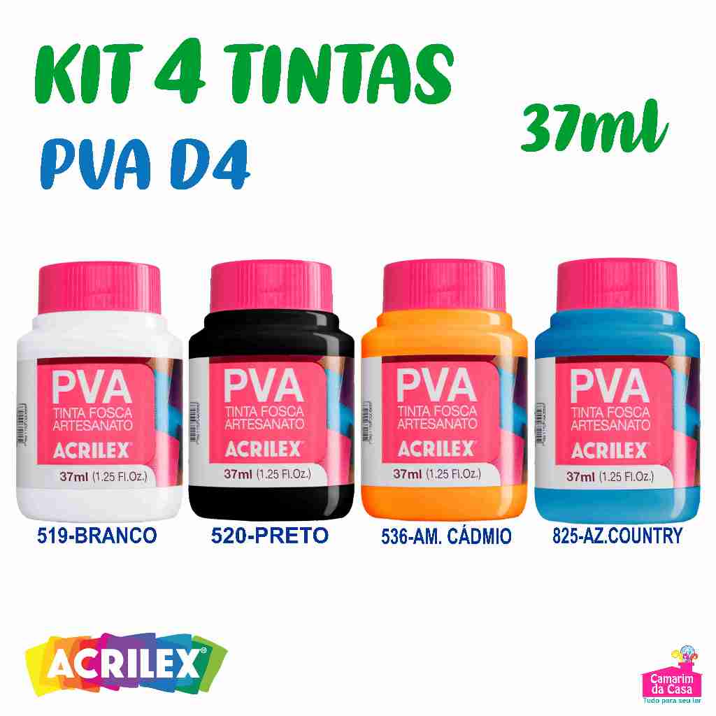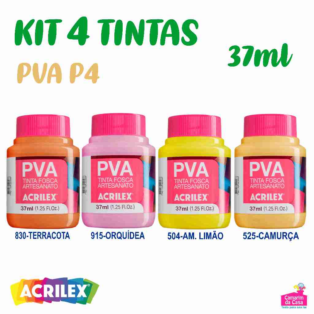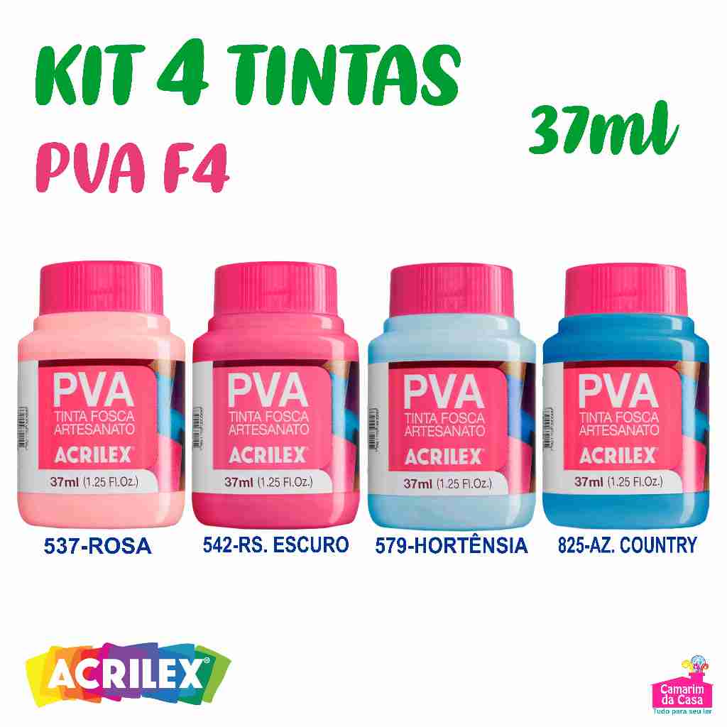 Kit com Tinta PVA Fosca Tubo com 37ml cada Acrilex Ideal p/ Madeira Cores Diversas Escolha o seu
