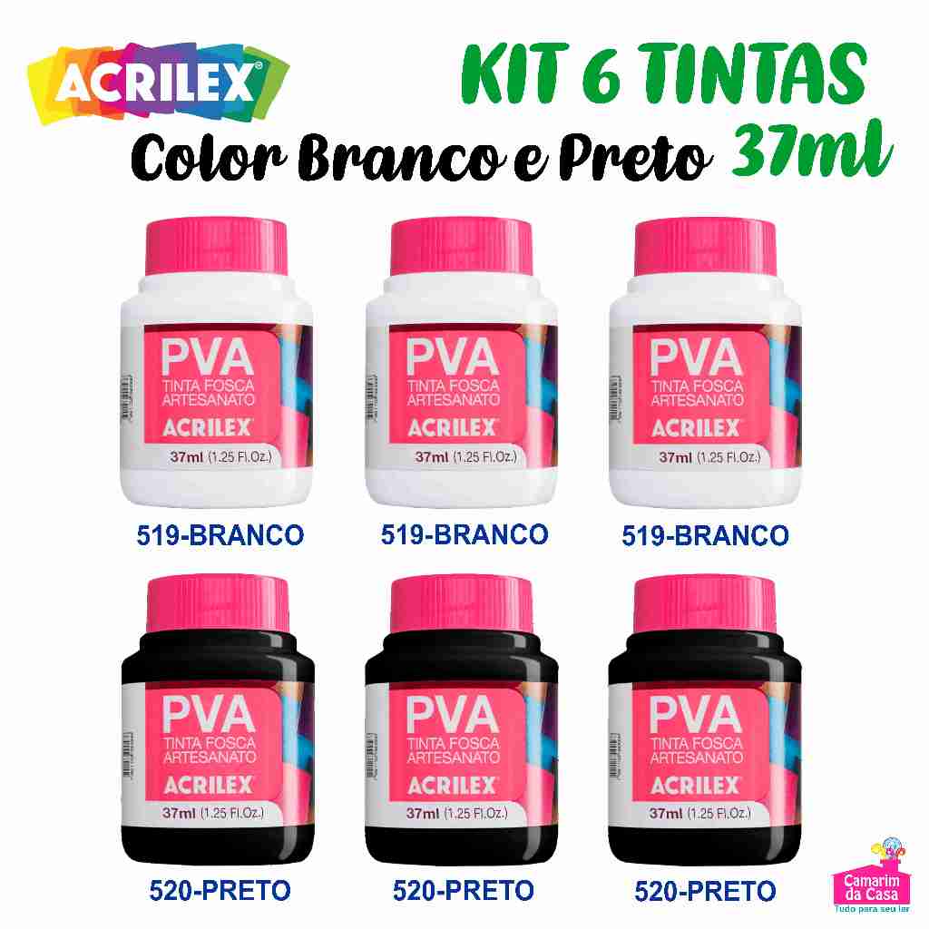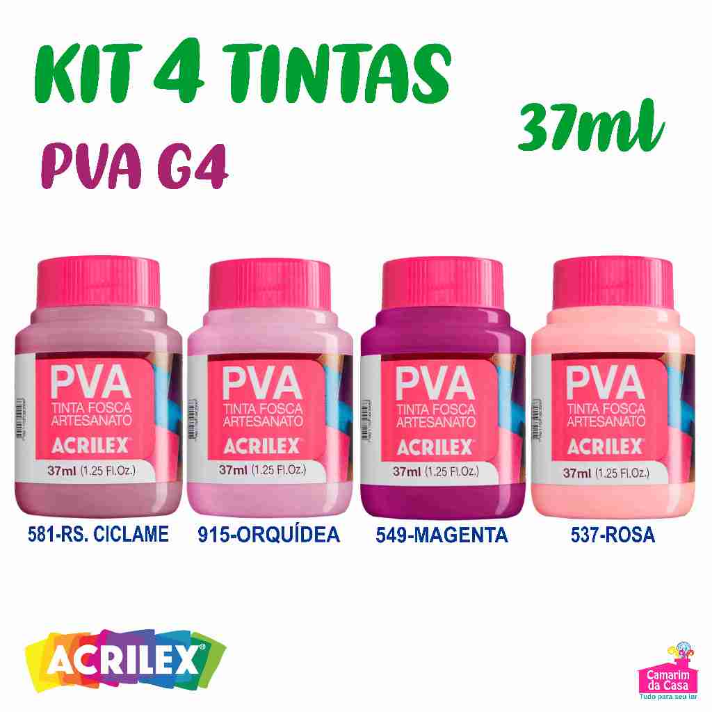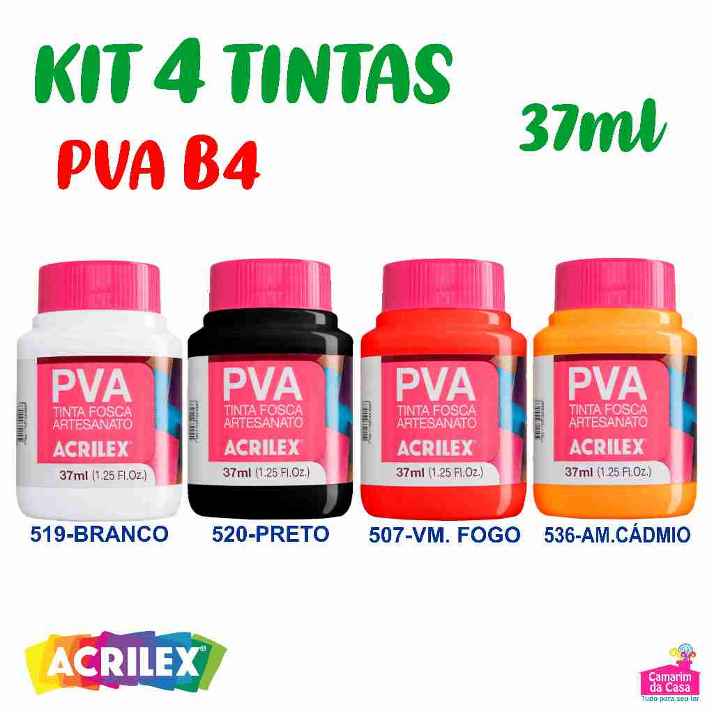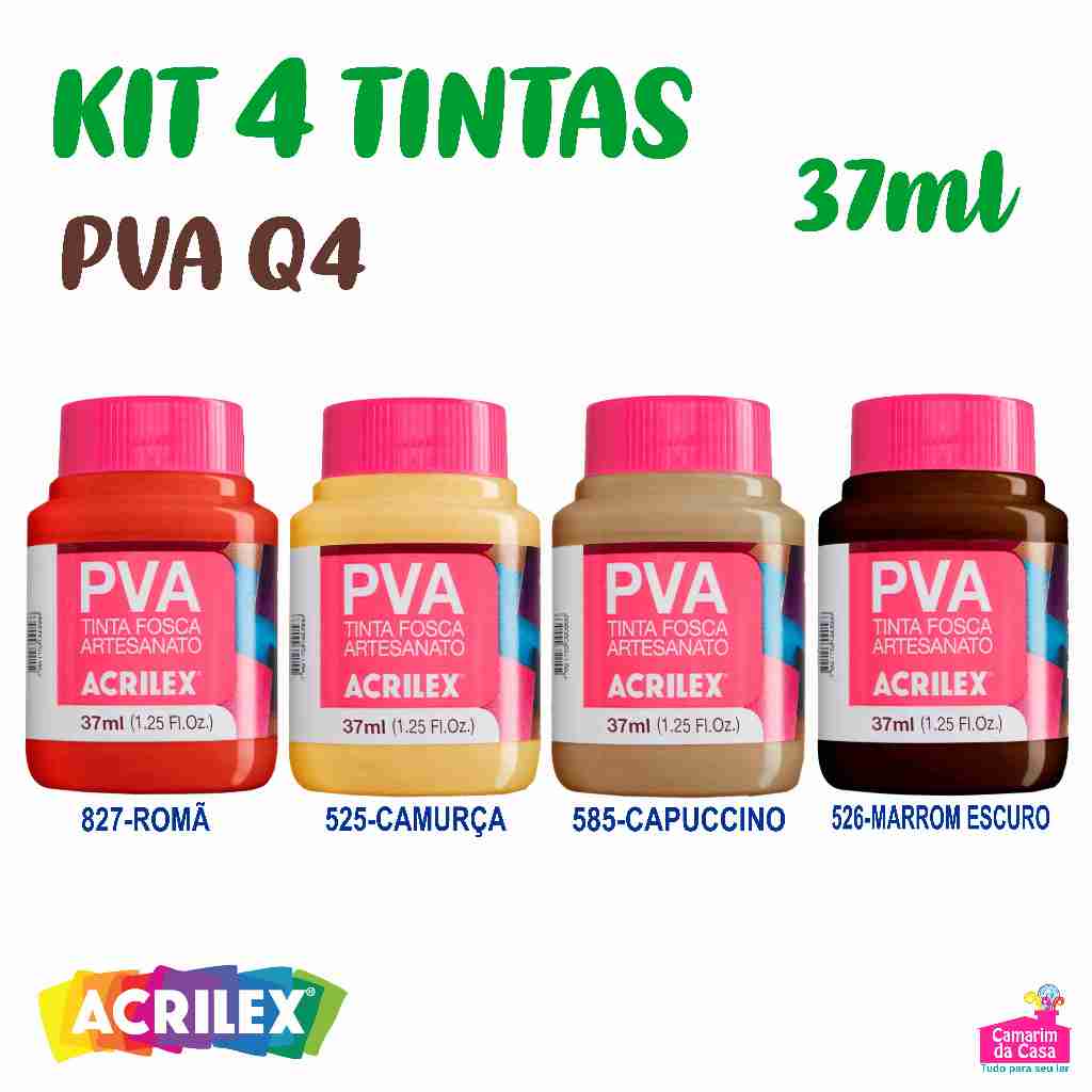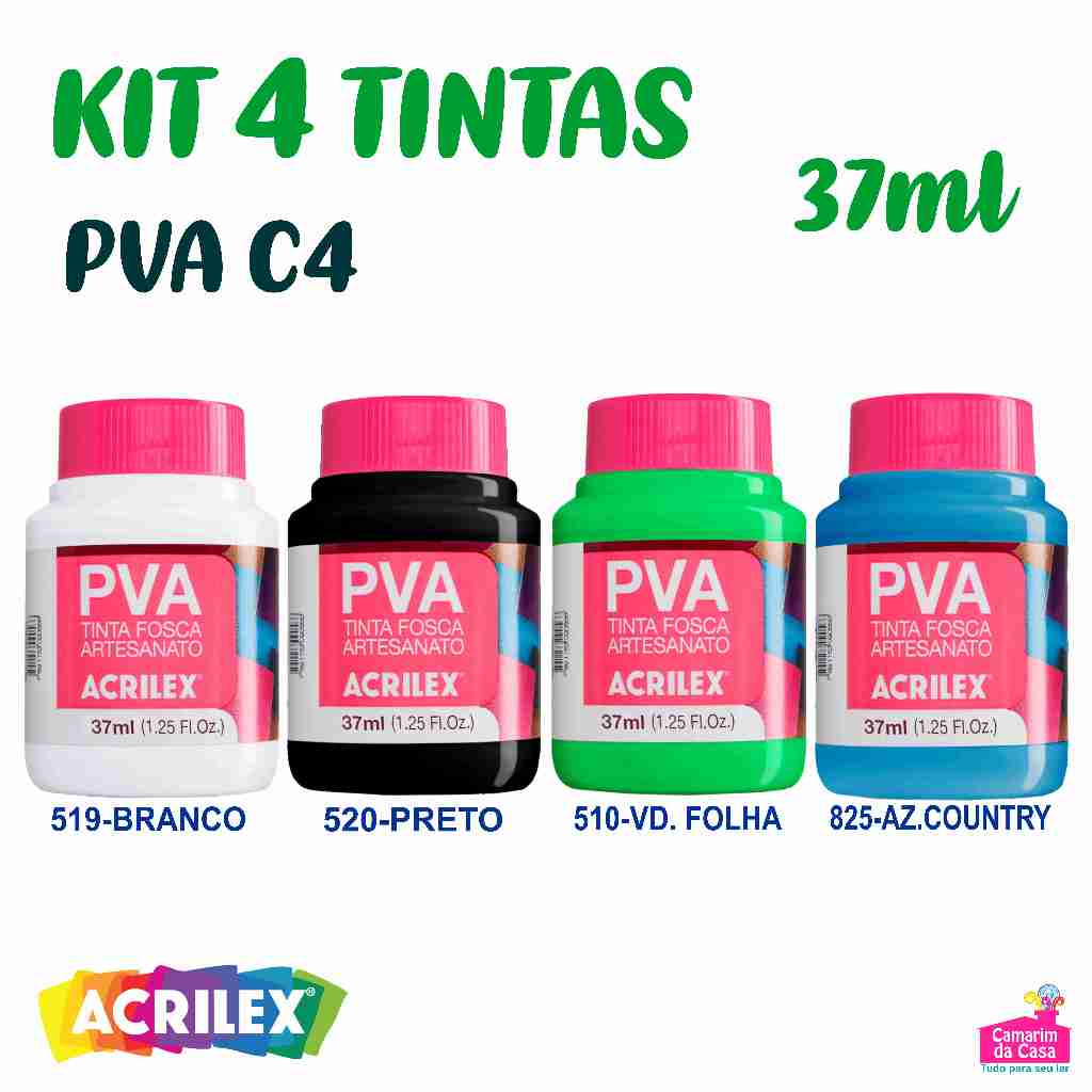 Kit com Tinta PVA Fosca Tubo com 37ml cada Acrilex Ideal p/ Madeira Cores Diversas Escolha o seu