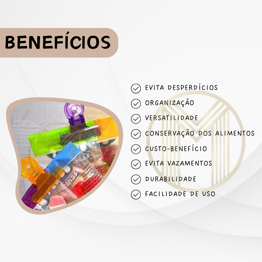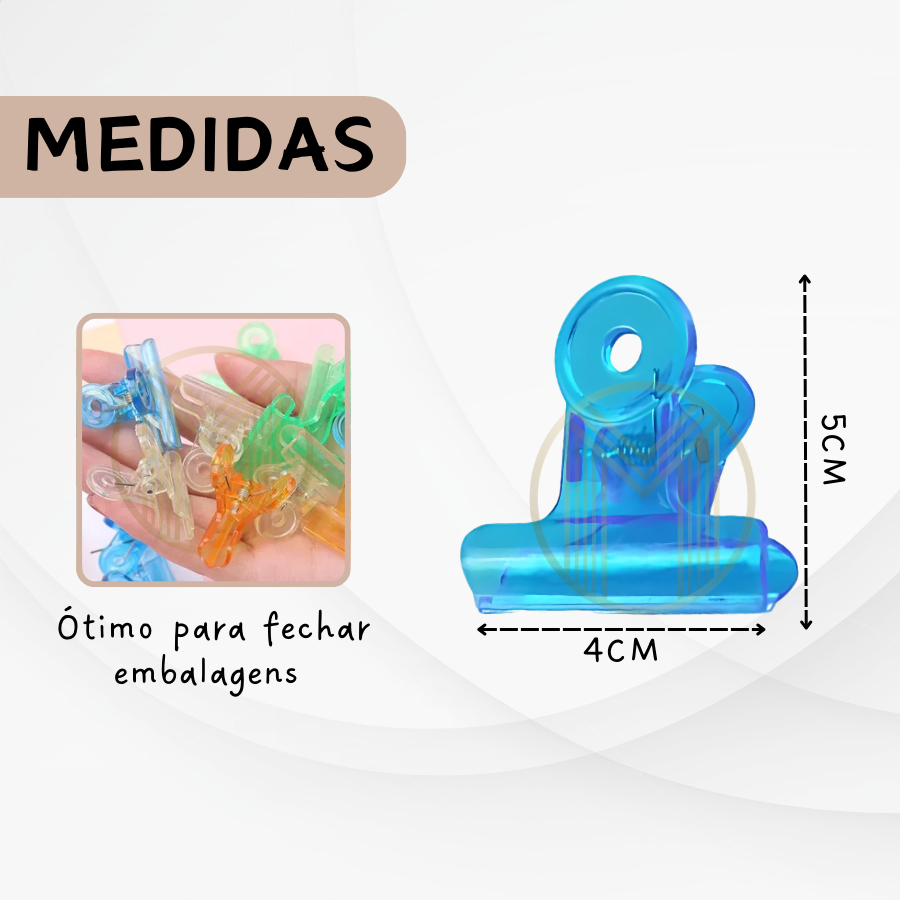 Kit 24 Prendedores Fecha Embalagem de Acrílico Colorido Clip Alimentos