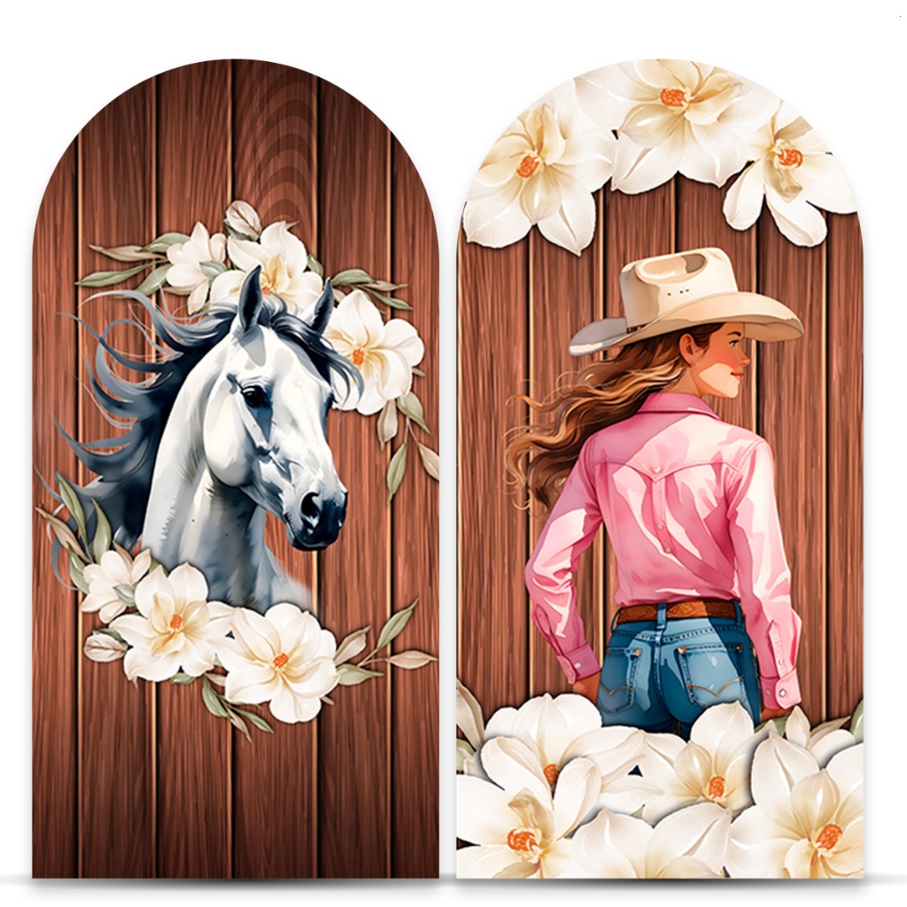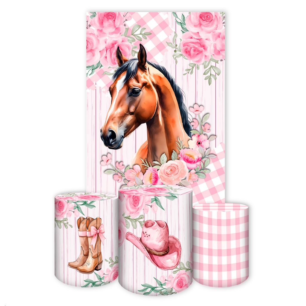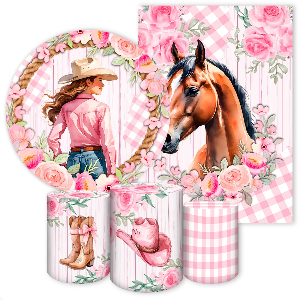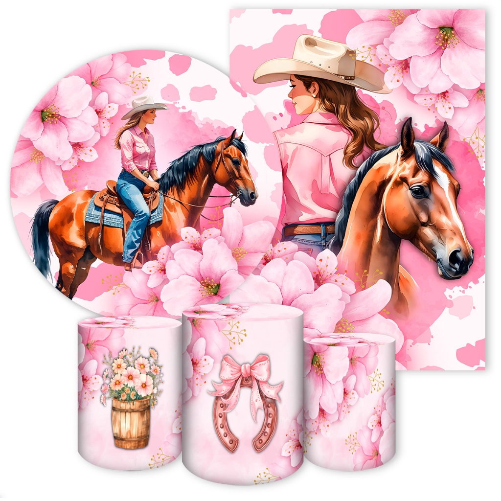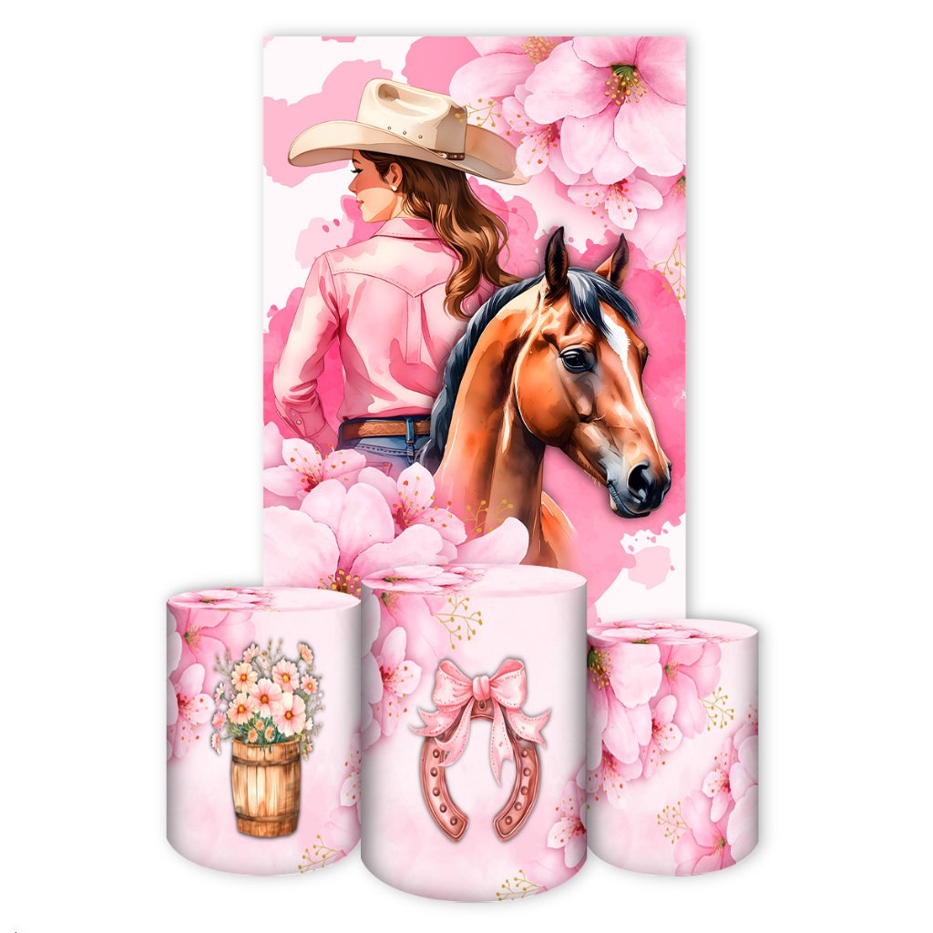 Capas para Painéis de Festa Sublimados Diversos Modelos Tema Boiadeira, Cavalos Country Meninas