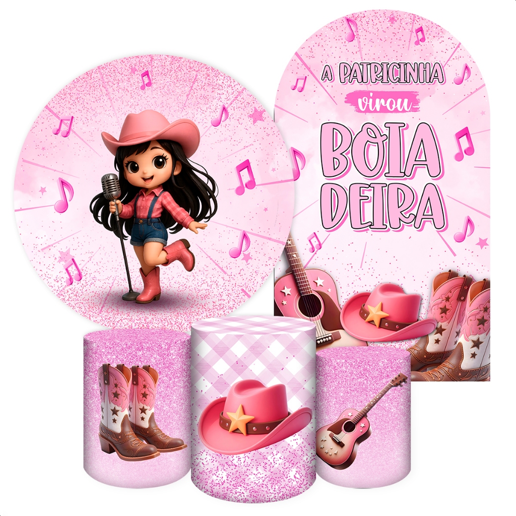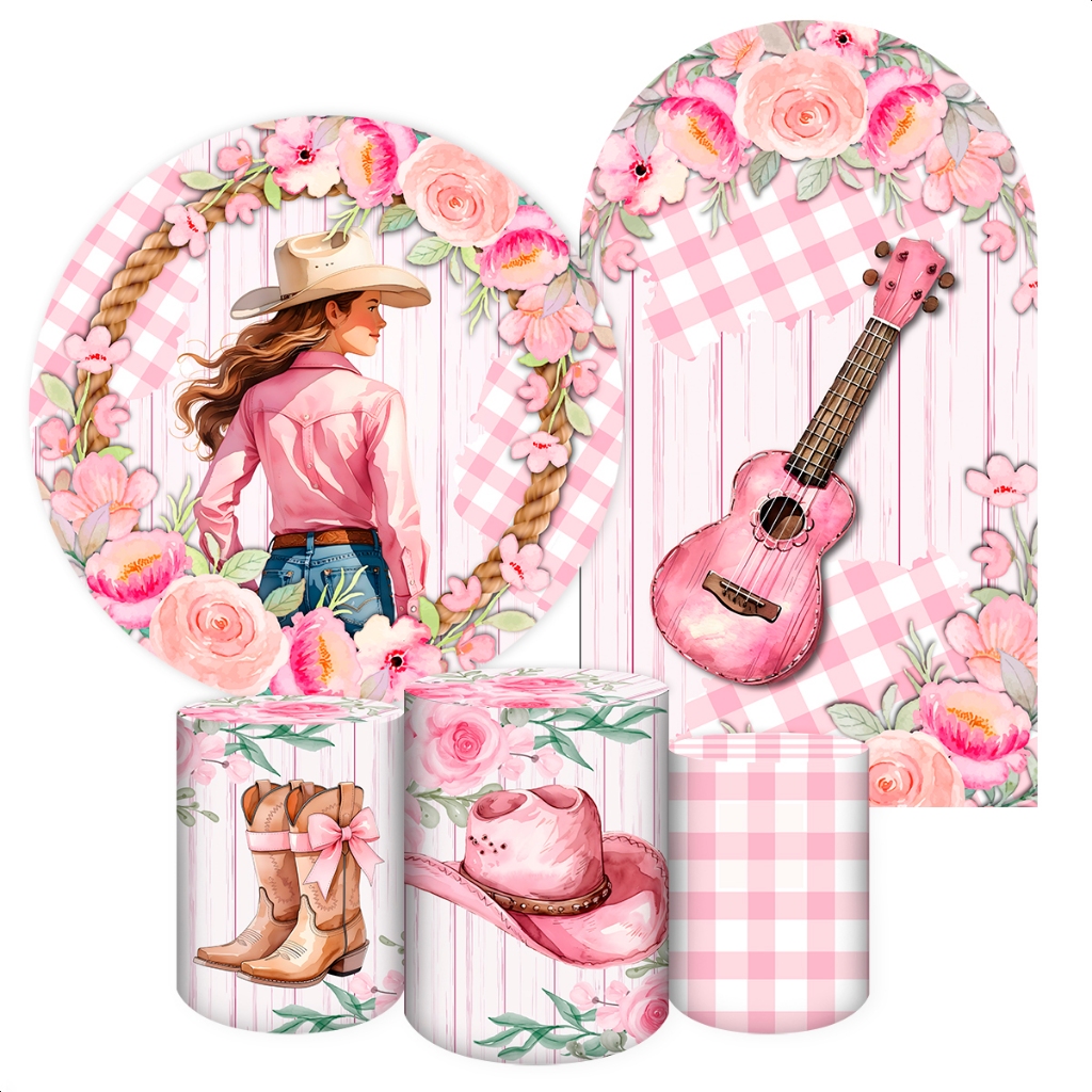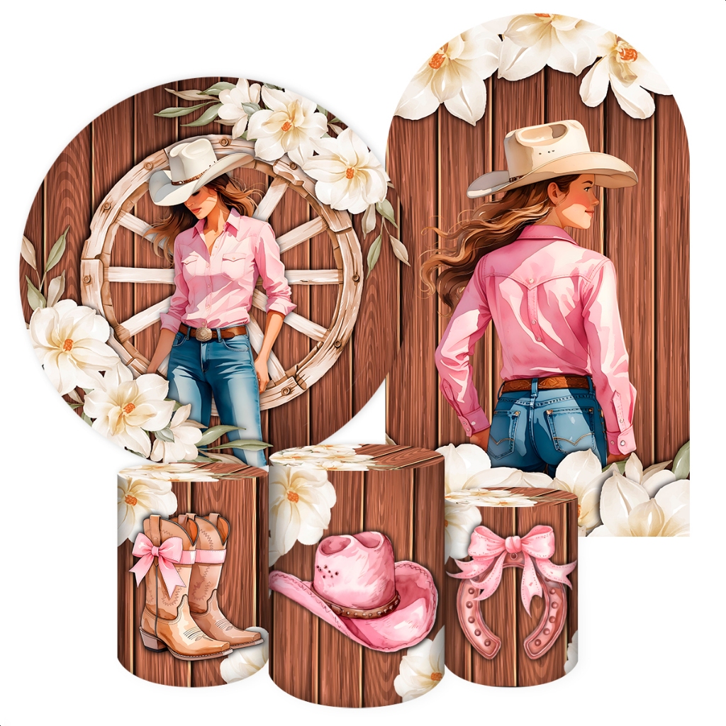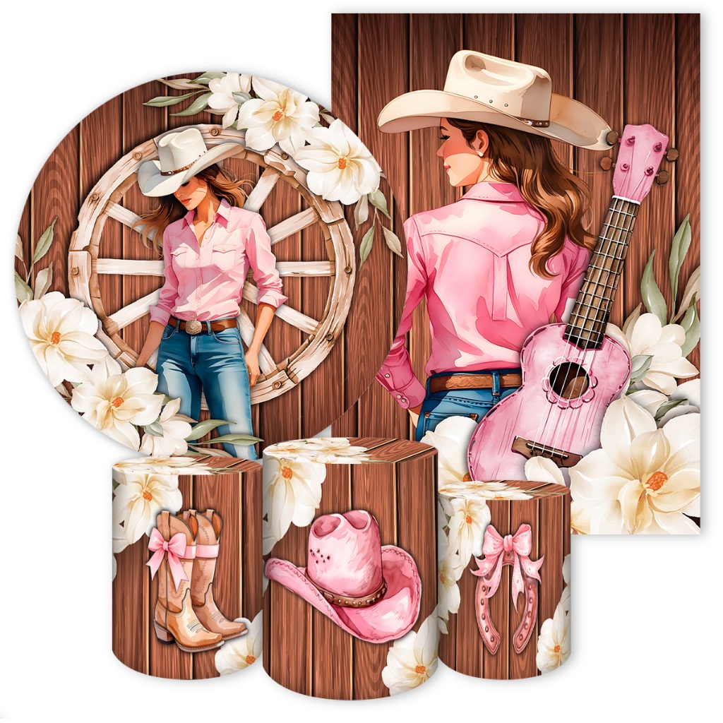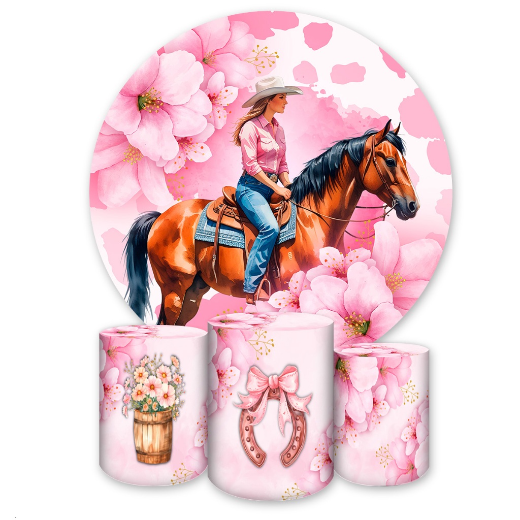 Capas para Painéis de Festa Sublimados Diversos Modelos Tema Boiadeira, Cavalos Country Meninas