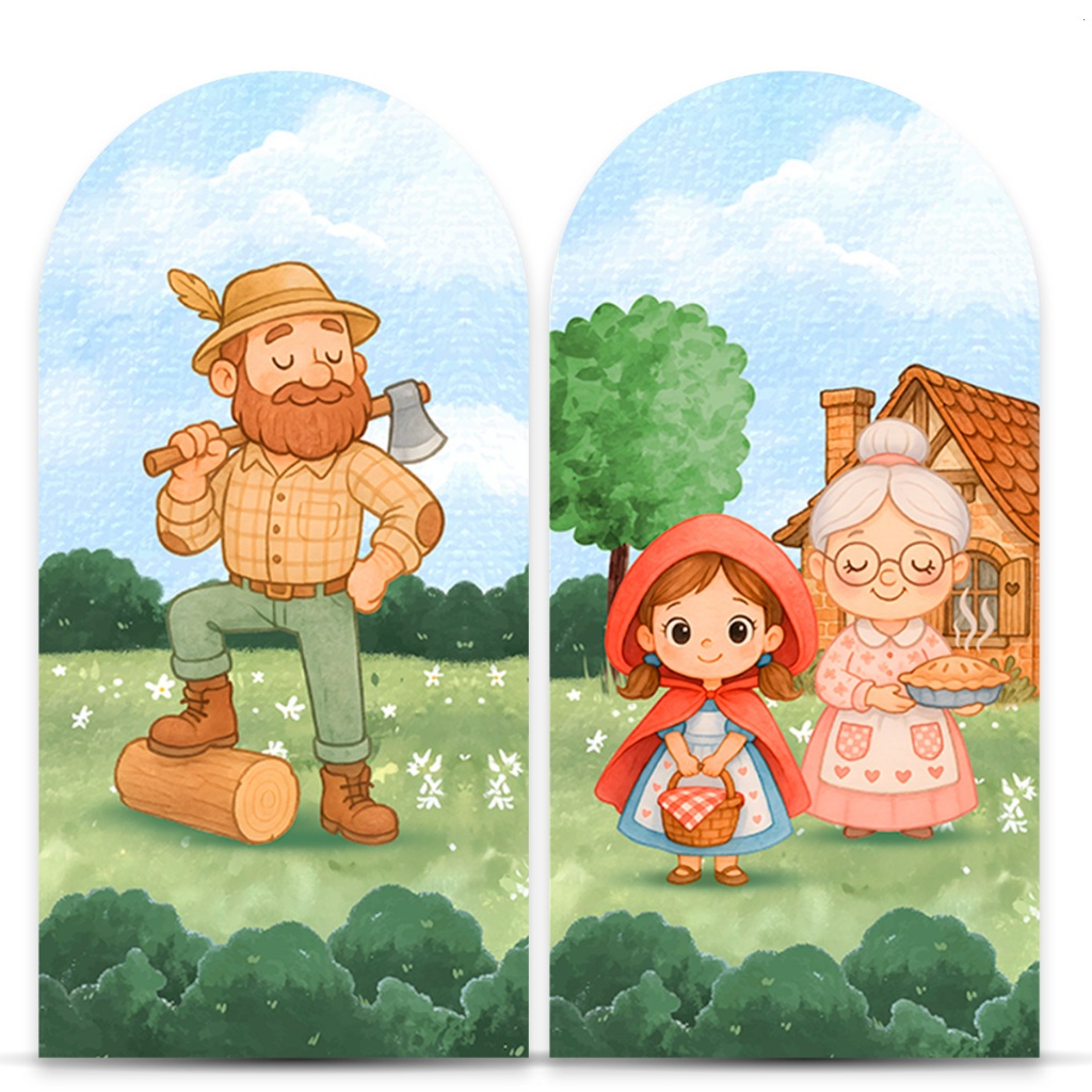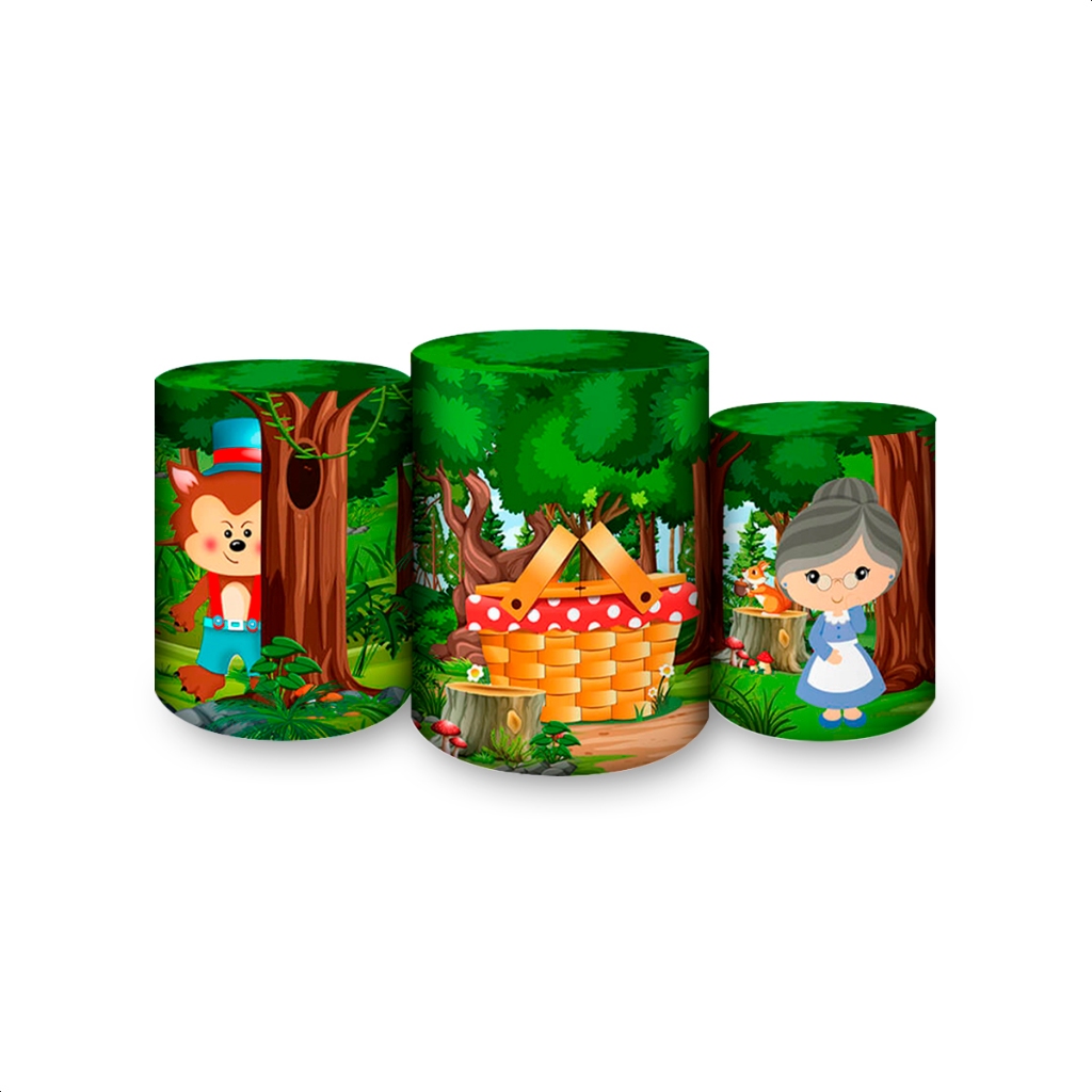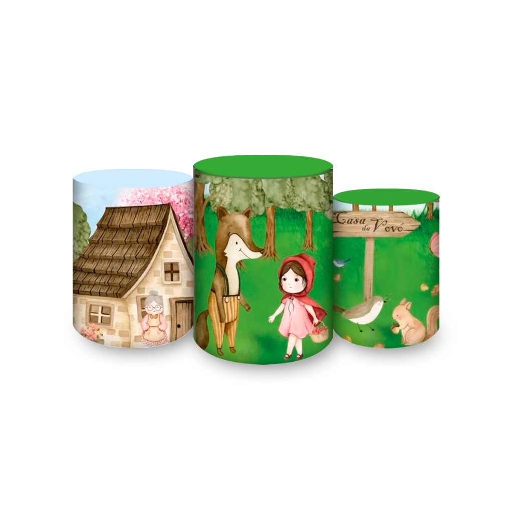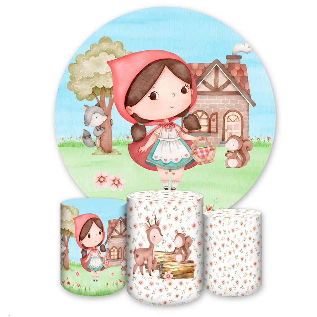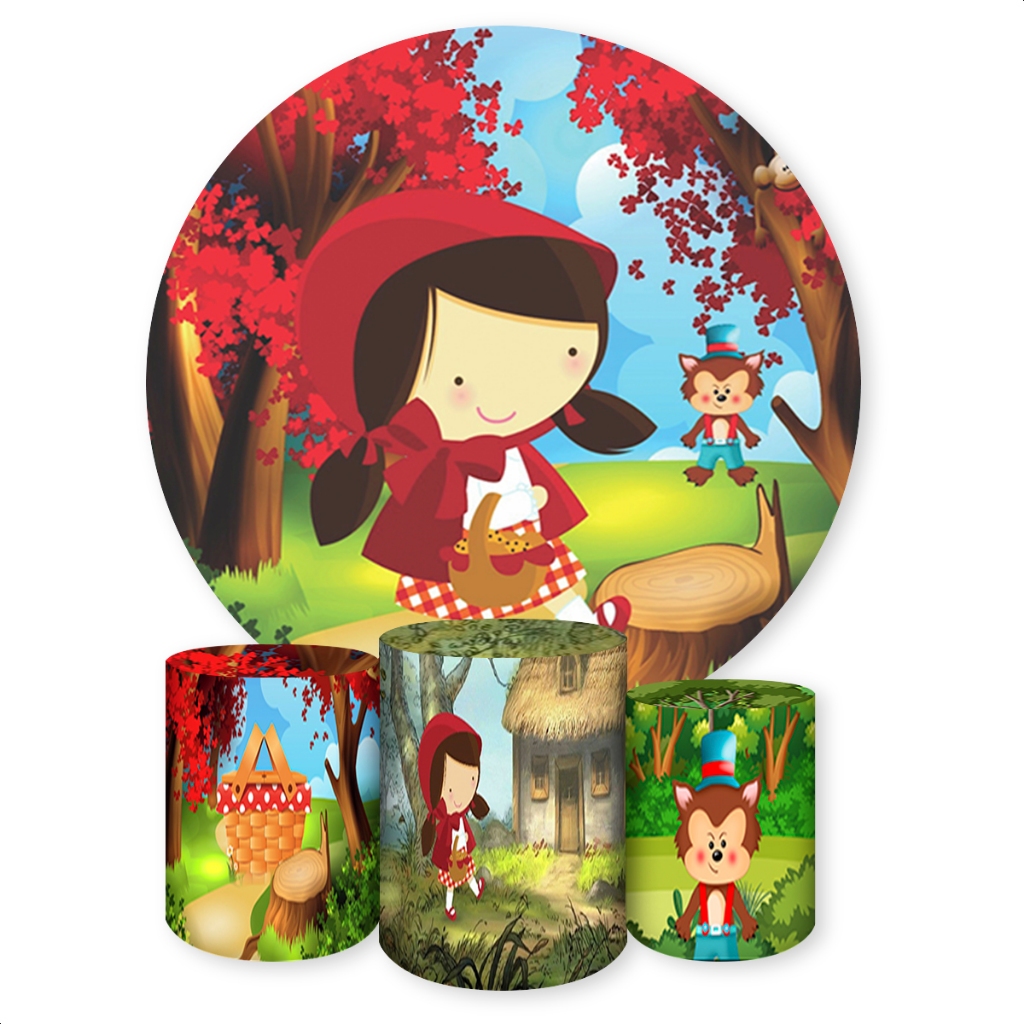 Kit Painel Sublimatico Festivo Tema Chapeuzinho Vermelho Cut Capa 3 Cilindro Painel Romano Painel Redondo Vários Modelos