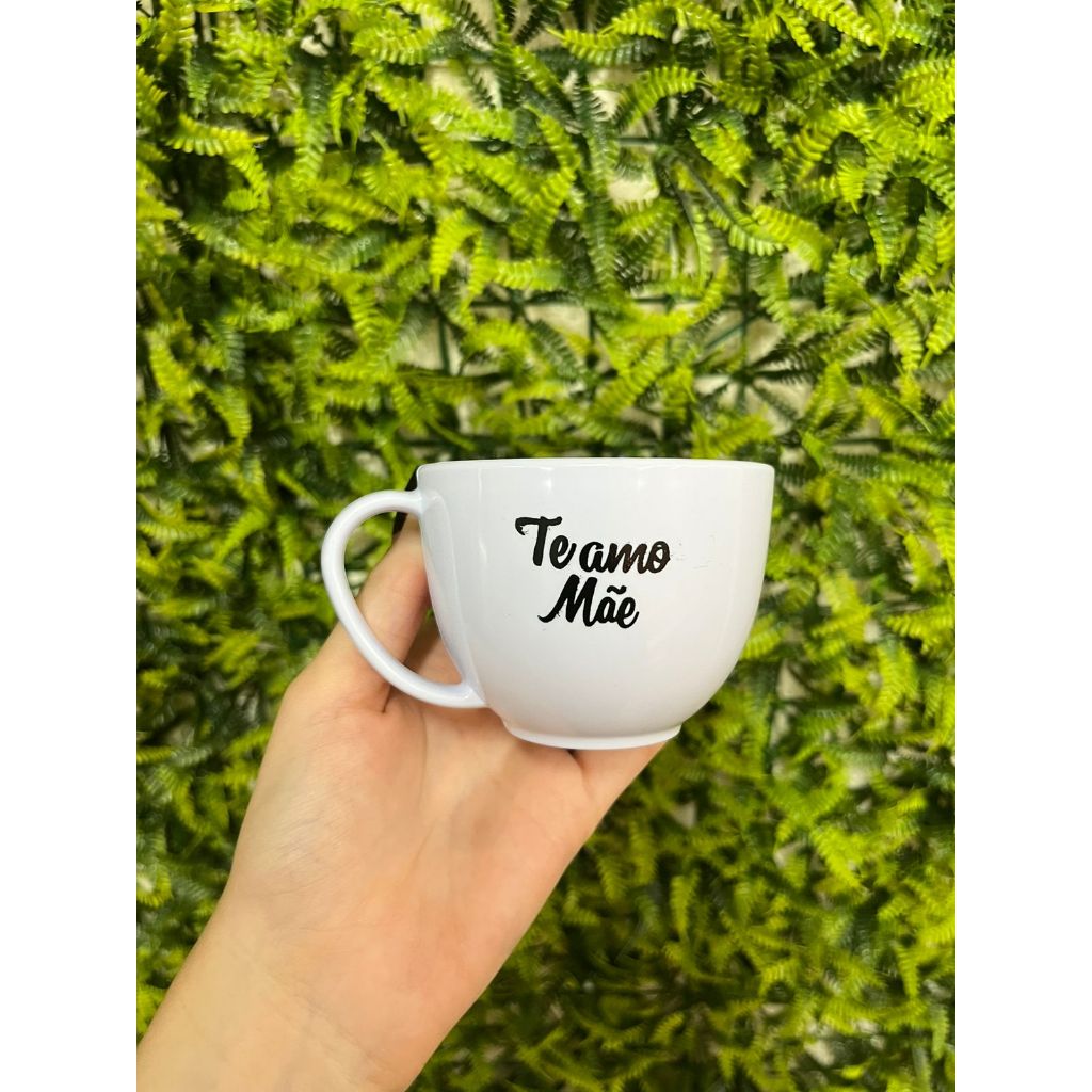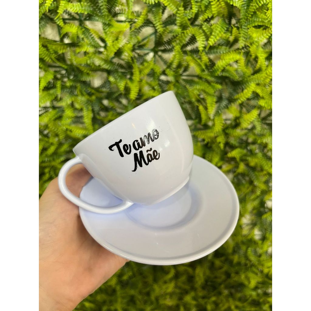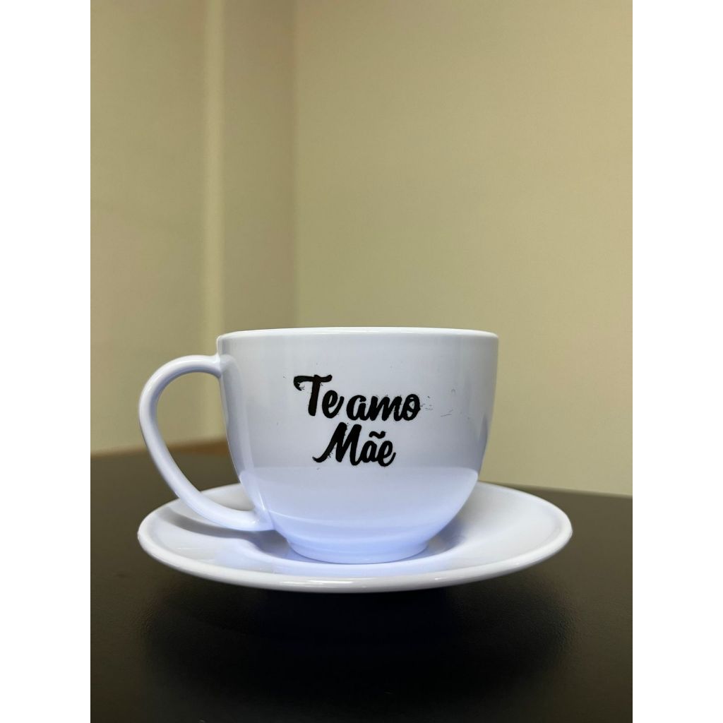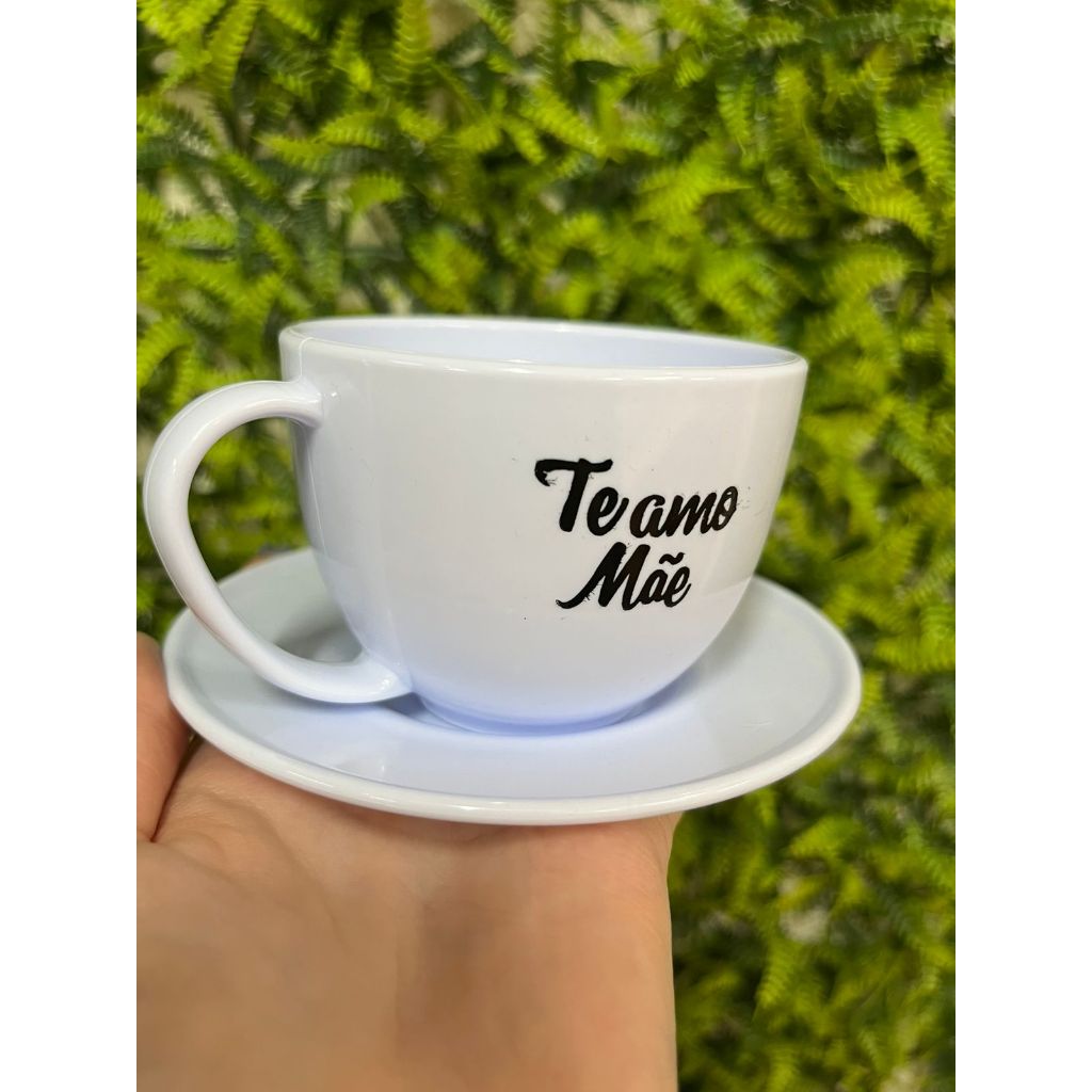 Kit 12 Peças 6 Xícara + 6 Pires Branco 200ml peças em ACRÍLICO {Te Amo Mãe} Café Chá comemoração