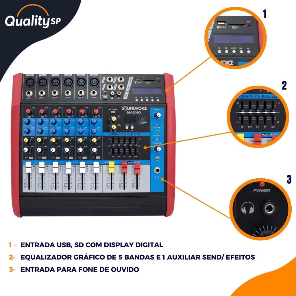 Mesa De Som 6 Canais Amplificada Soundvoice MA630x Bluetooth