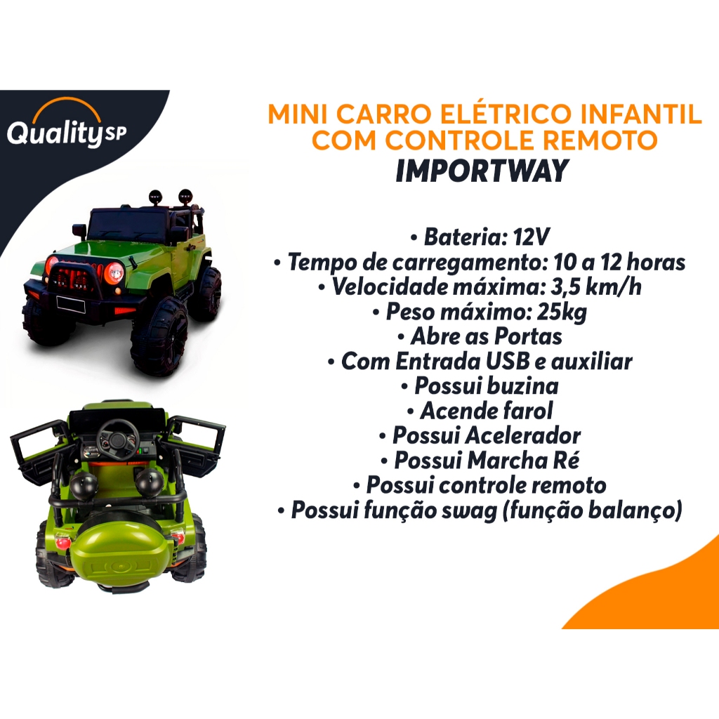 Mini Jipe Elétrico Infantil Verde Mini Carro12v Com Controle