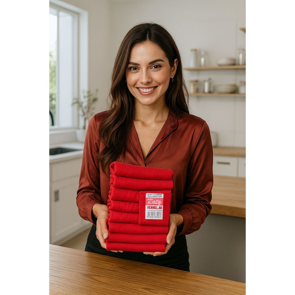 Kit 10 Pano de Prato GRANDE Vermelho Pé de Galinha - Com Bainha - 100% Algodão