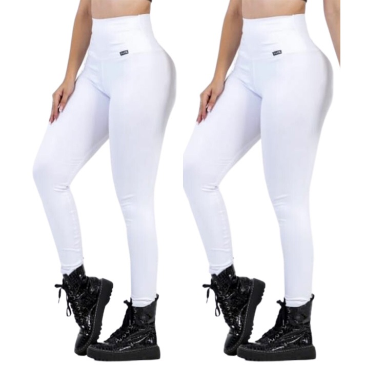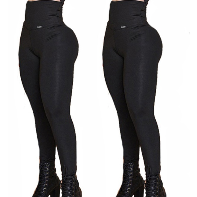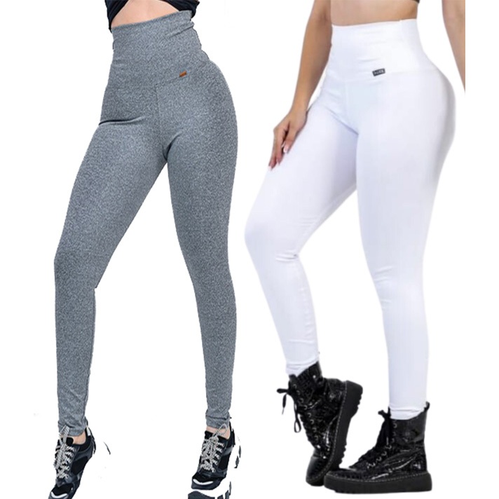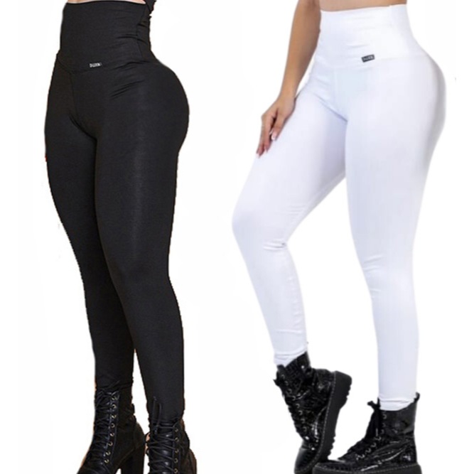 kit 2 calças modeladora suplex acetinado tecido grosso zero transparência musculação academia