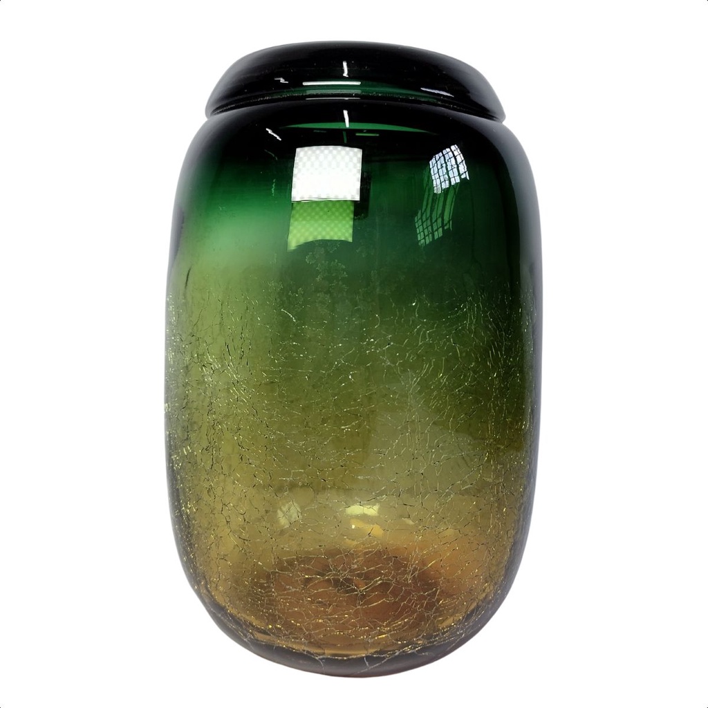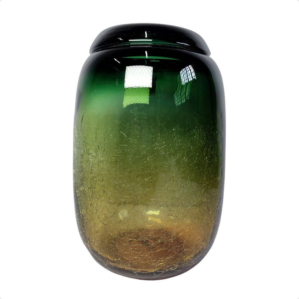 Vaso De Vidro Âmbar Cor Verde Craquelado
