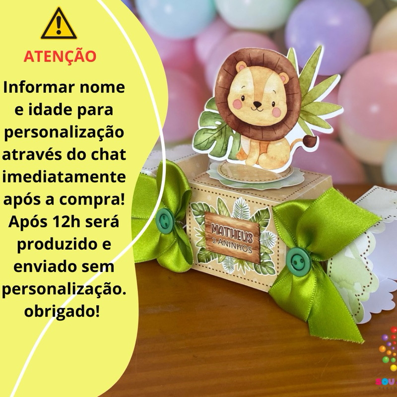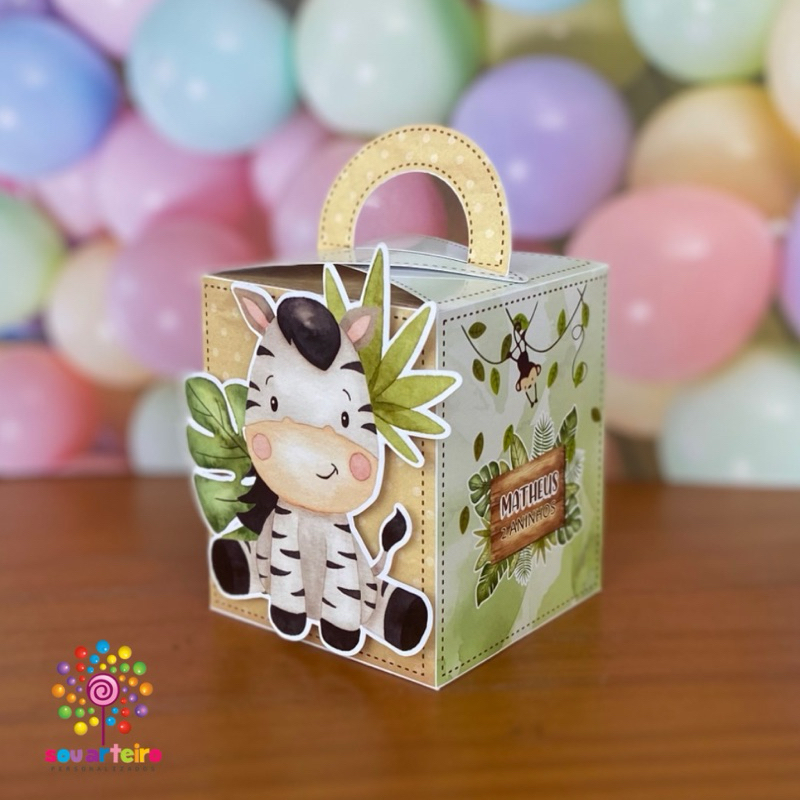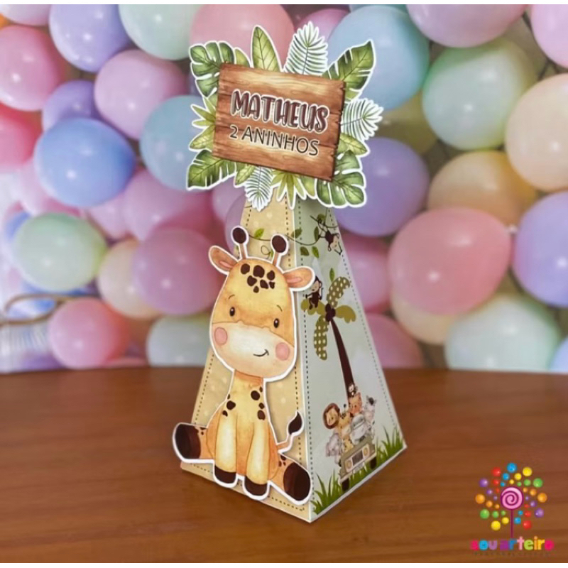 Caixa Bala lembrancinha Safari Baby 3D - Personalizado – Lembrancinha personalizada para Festa infantil - Pegue e Monte