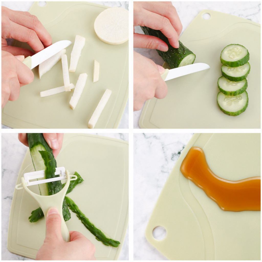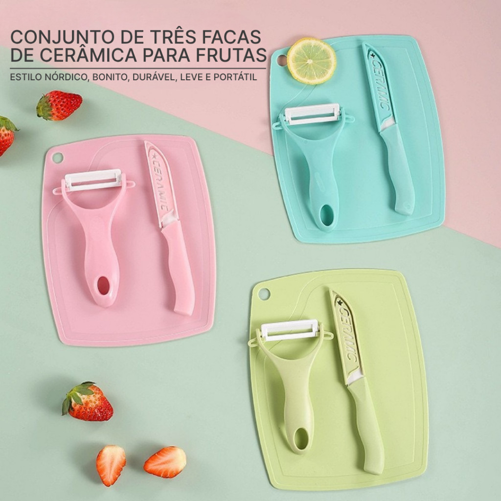 Kit3 Tábua de Corte, Faca e Descascador Conjunto Faca para Legumes e Frutas Cozinha Jogo da Faca
