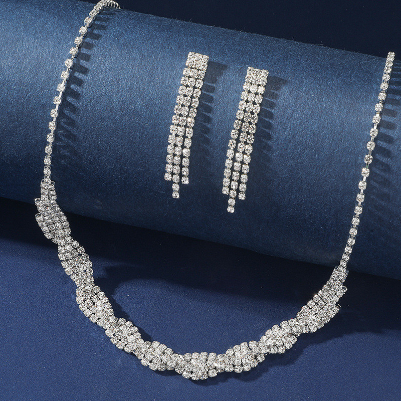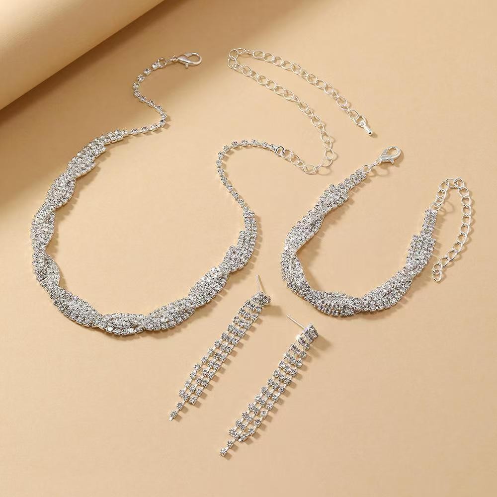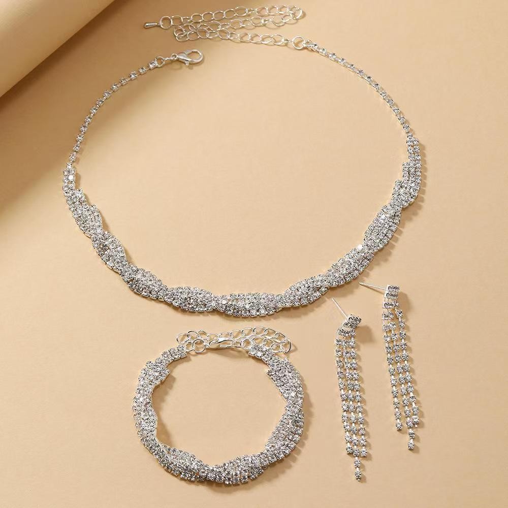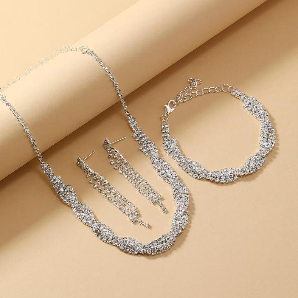 Conjunto de joias de casamento 3 em 1 incluindo colar de diamantes brincos e pulseira Elegante e brilhante