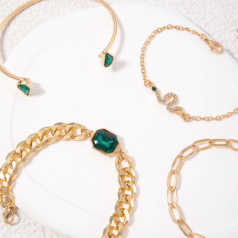 Conjunto De 4 Peças De Pulseira Quadrada Vintage Com Diamantes Verdes Pulseira Com Diamantes E Coração De Cobra
