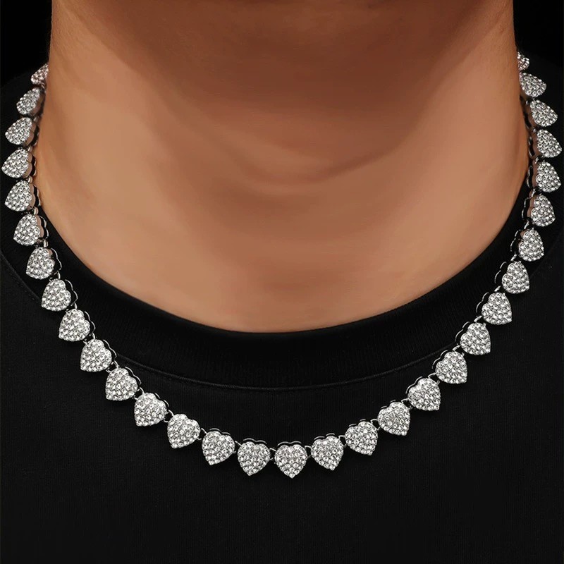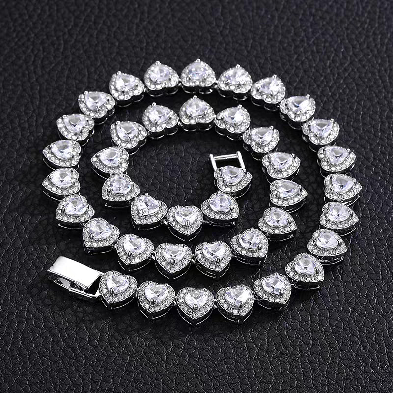 Colar em formato de coração cravejado com um diamante de 11 mm Colar Joia feminina requintada