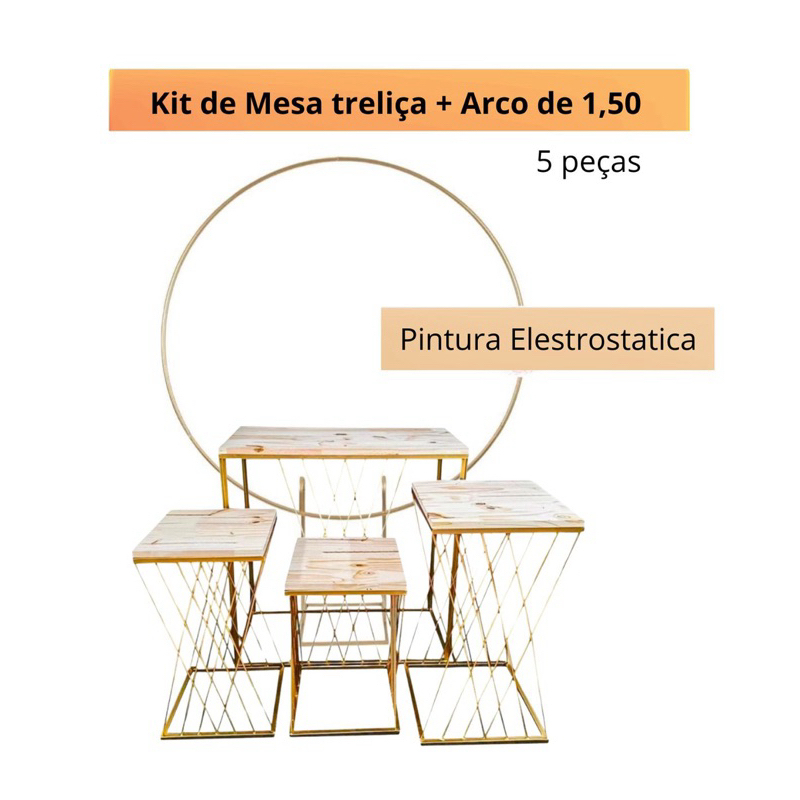 Jogo De Mesa Quarteto Treliça Kit Decoração Festa Casamento + Arco Redondo de 1,50