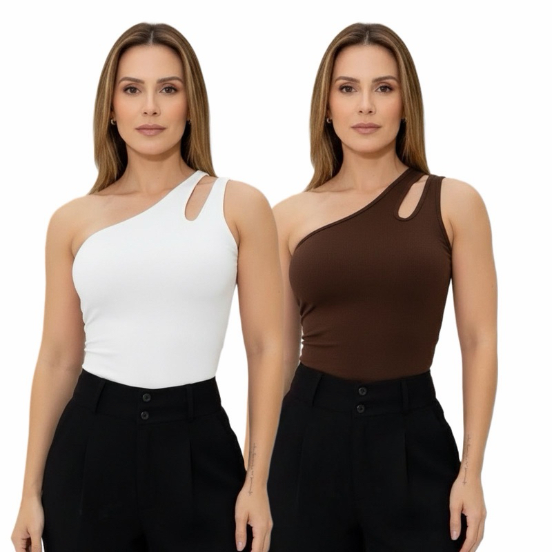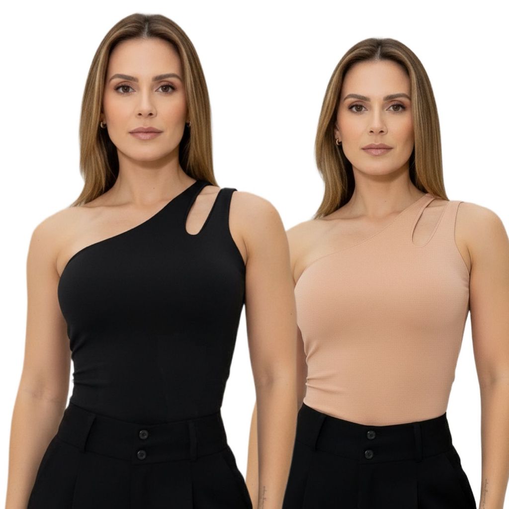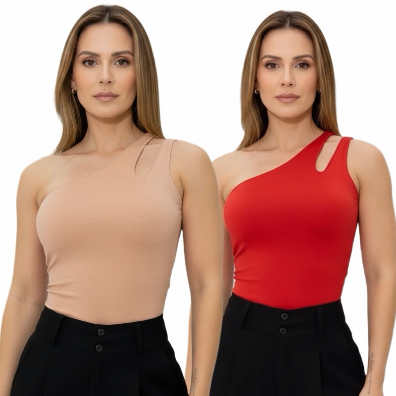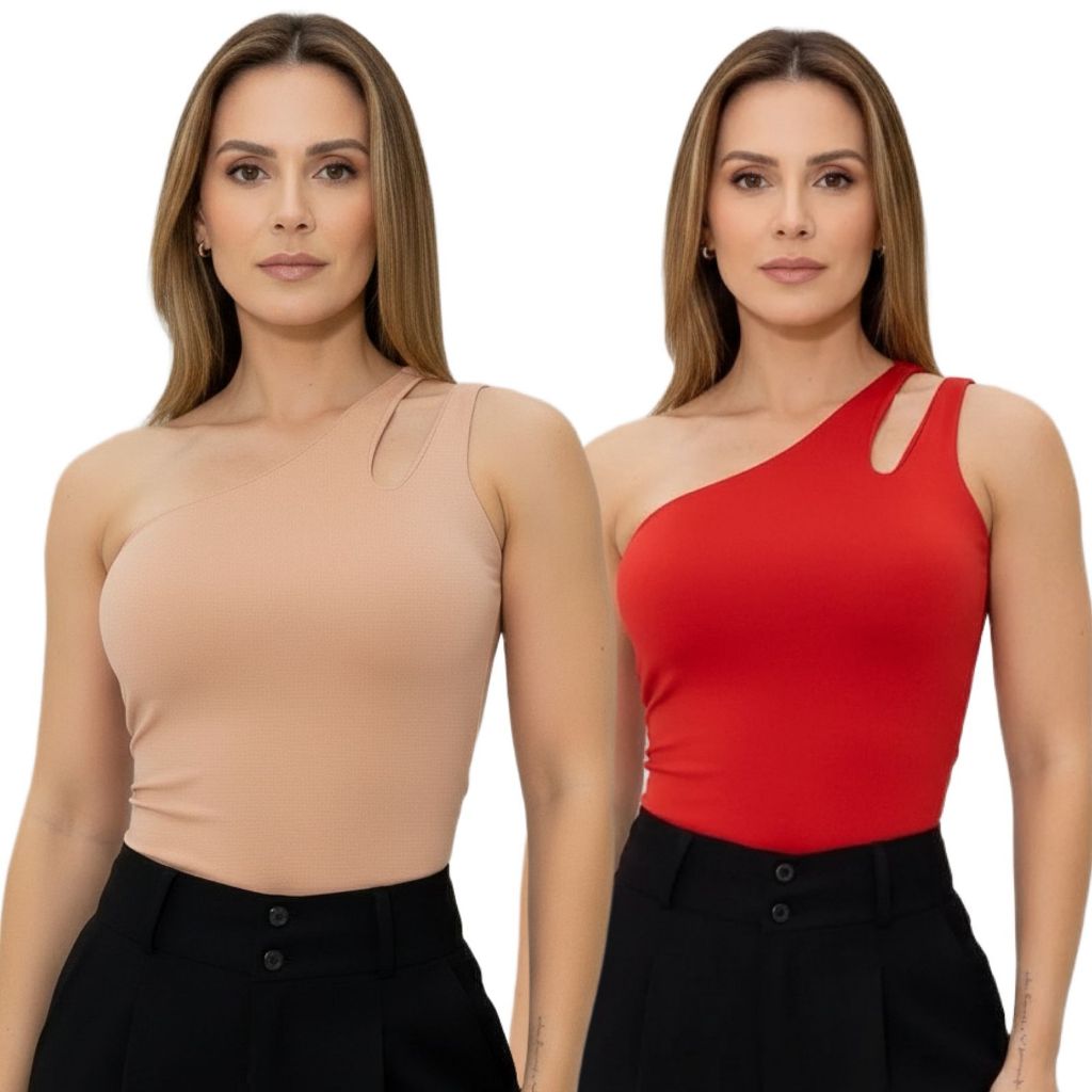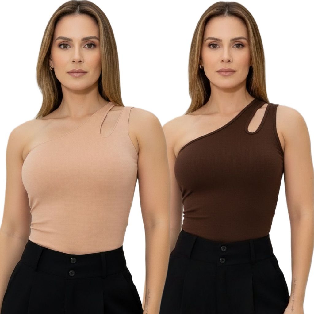 Kit 2 Blusas Nula Feminina Manga Um Obro Abertura na Manga Básica Tecido Suplex Premium com Forro Blusinha Feminina Moda
