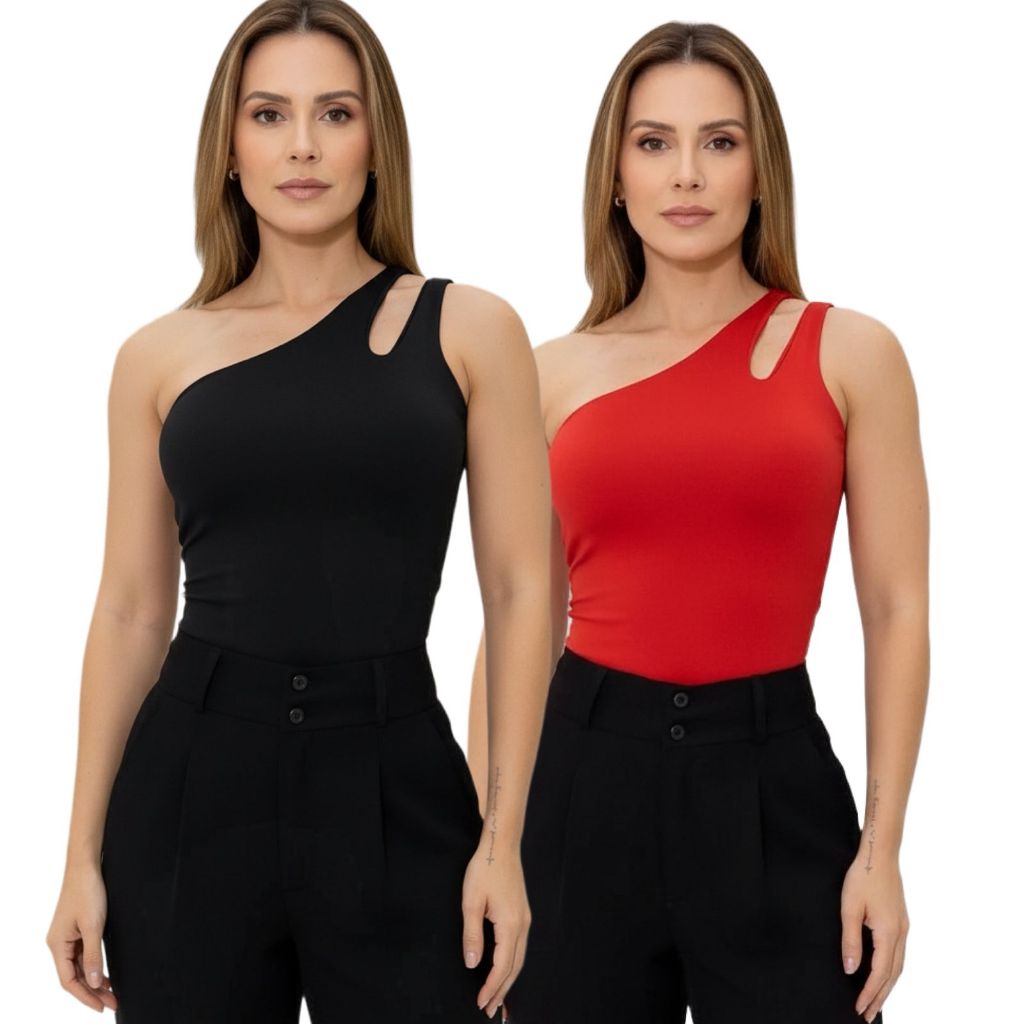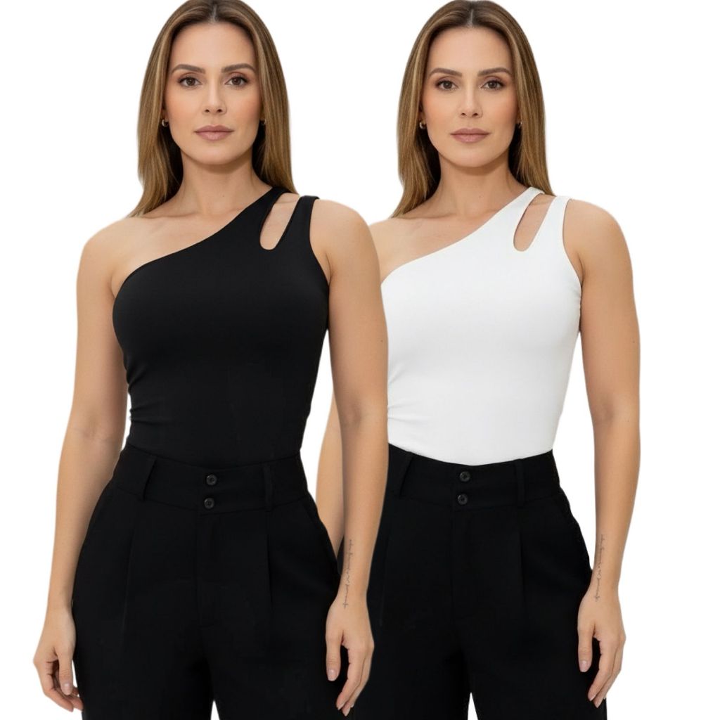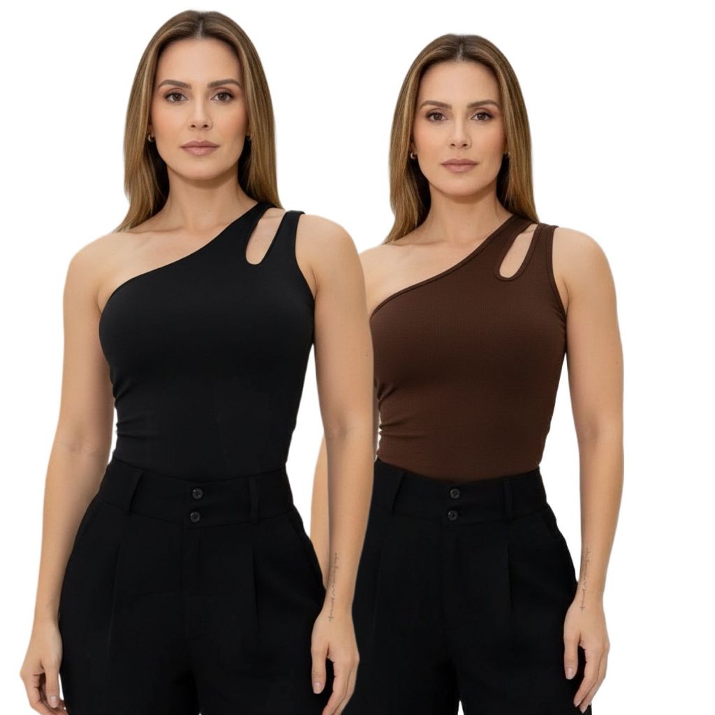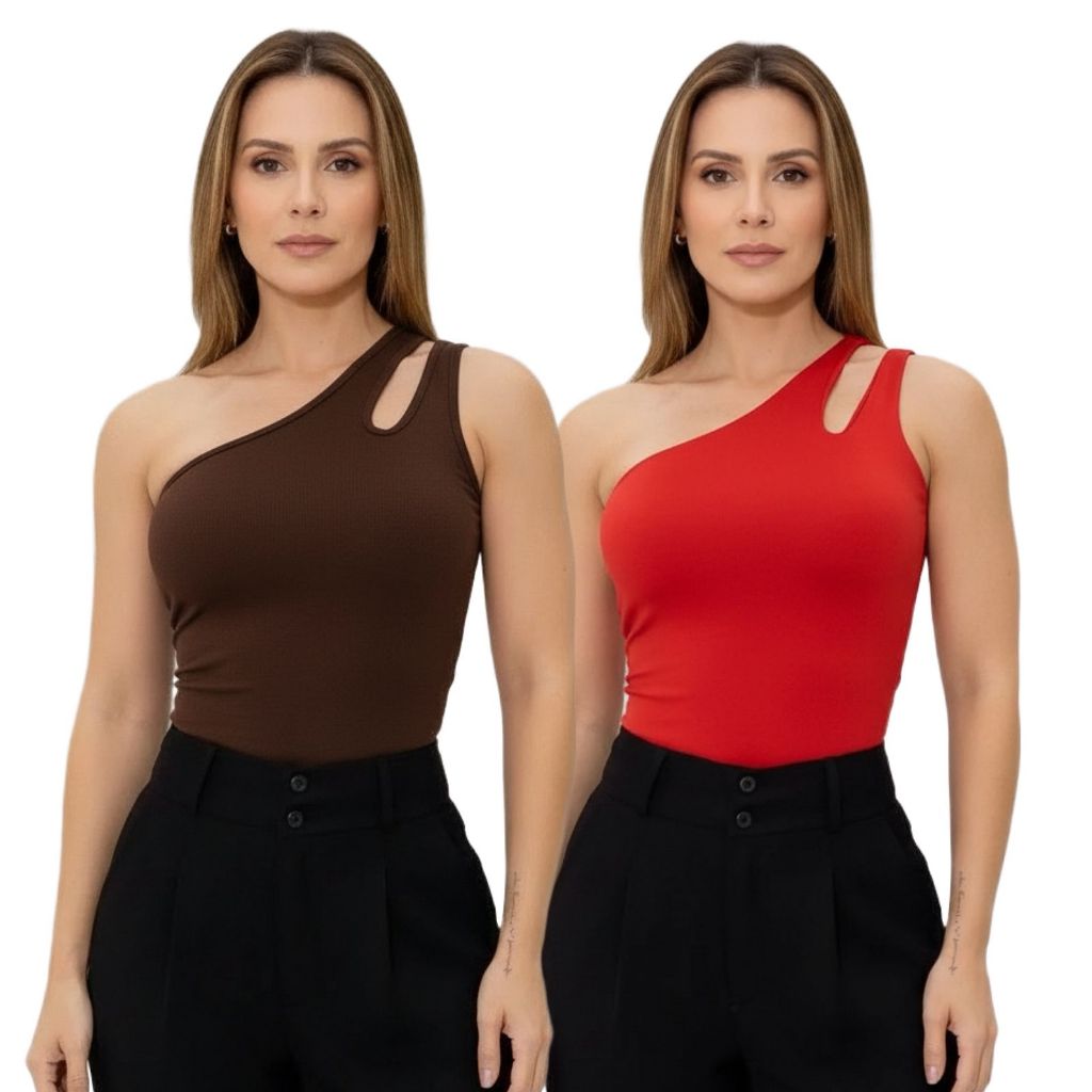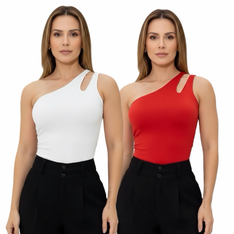 Kit 2 Blusas Nula Feminina Manga Um Obro Abertura na Manga Básica Tecido Suplex Premium com Forro Blusinha Feminina Moda