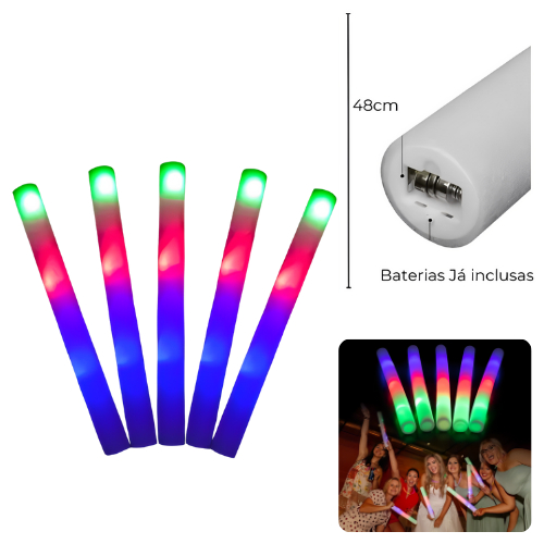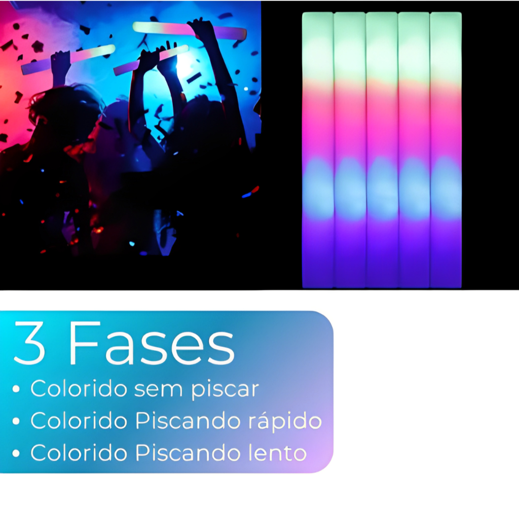 Kit 10/20/40 Bastão de Led Espuma Neon 3 Fases - Festas Rave Casamento - Pisca Luz