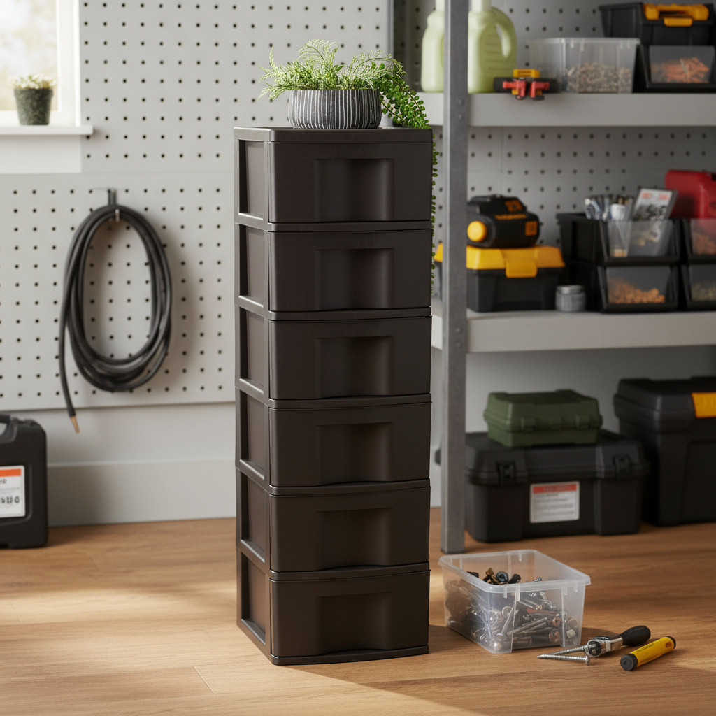 Organizador Multiuso Gaveteiro de Chão 6 Gavetas Preto GV-14 Resistente PROMOÇÃO 🗄️🖤