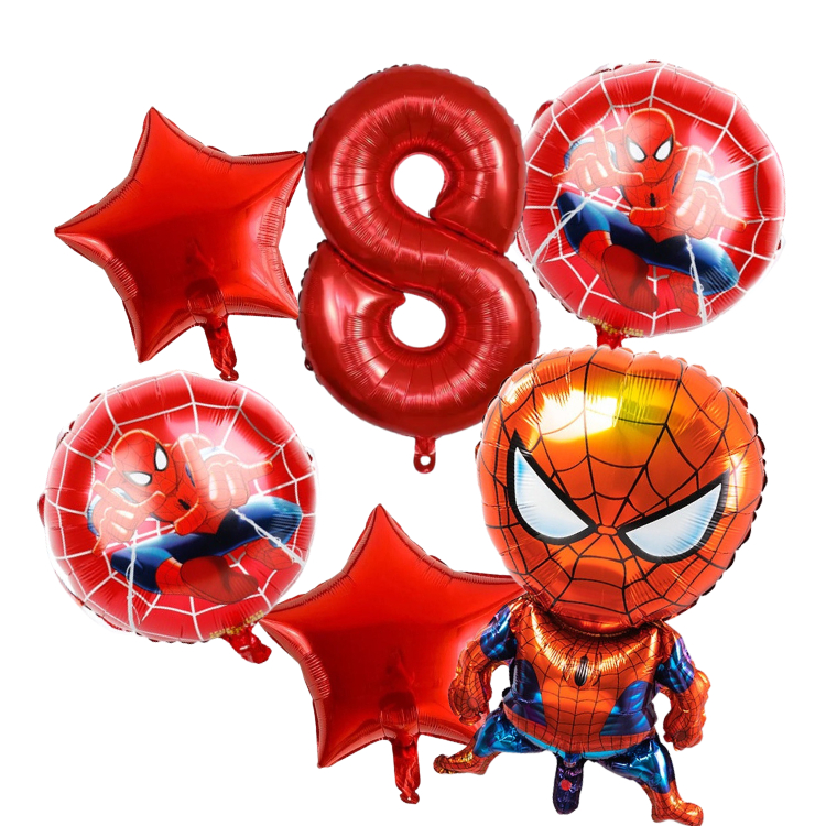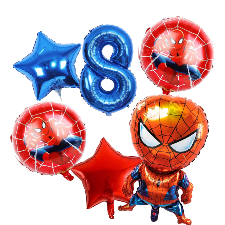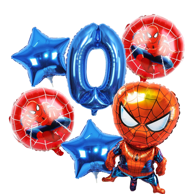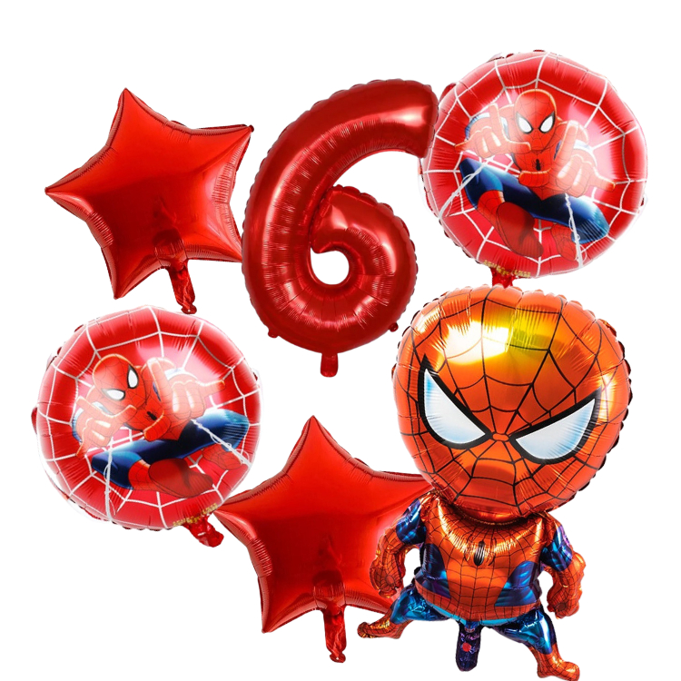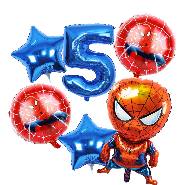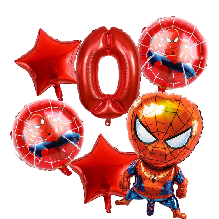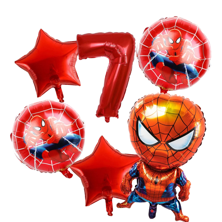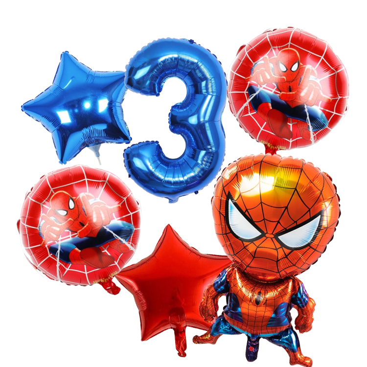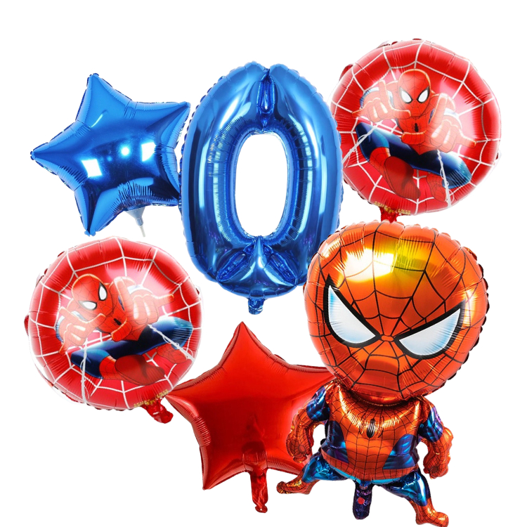 Kit 6 Balão Homem Aranha Heroi + Balão Redondo+ Estrela + Numero
