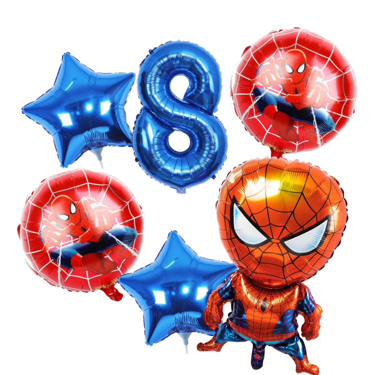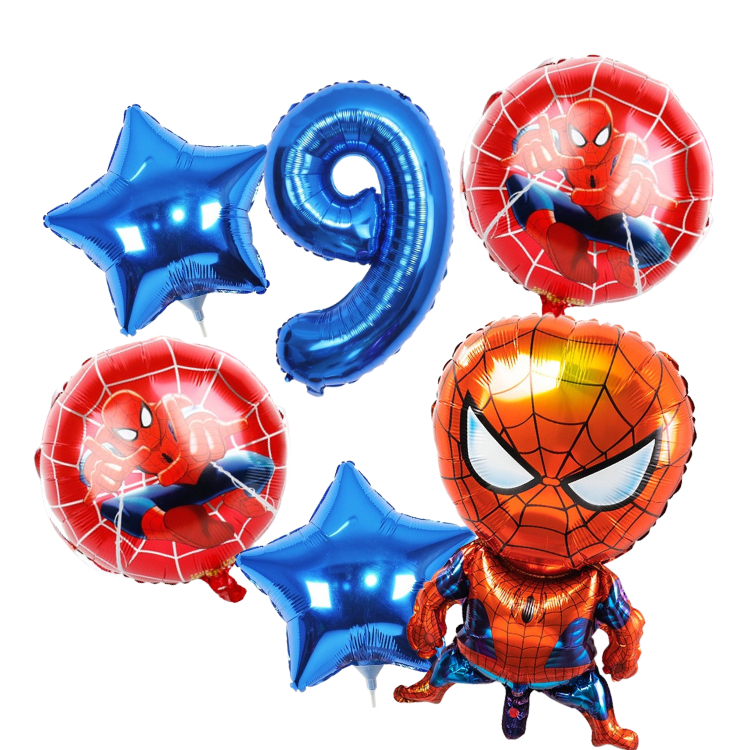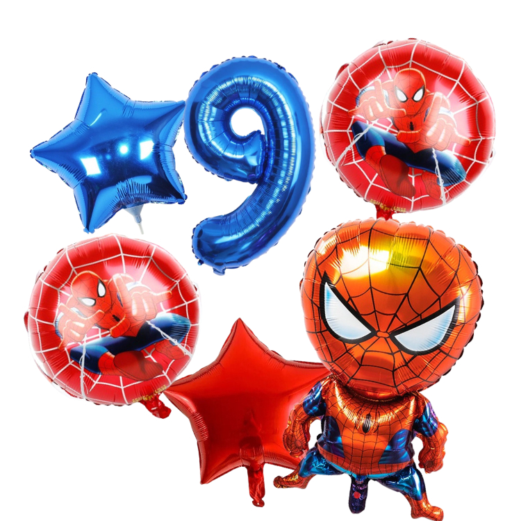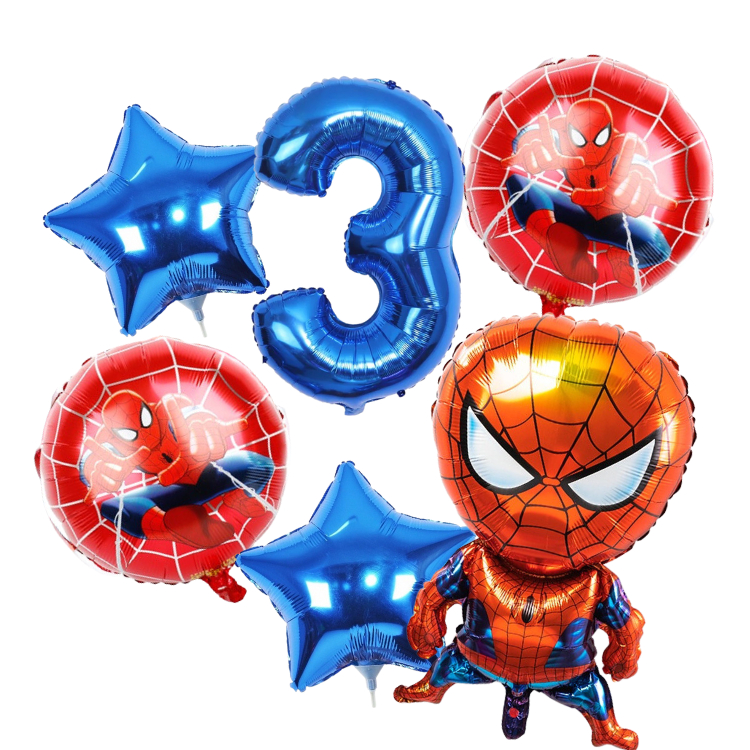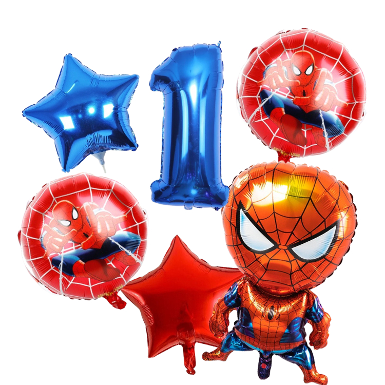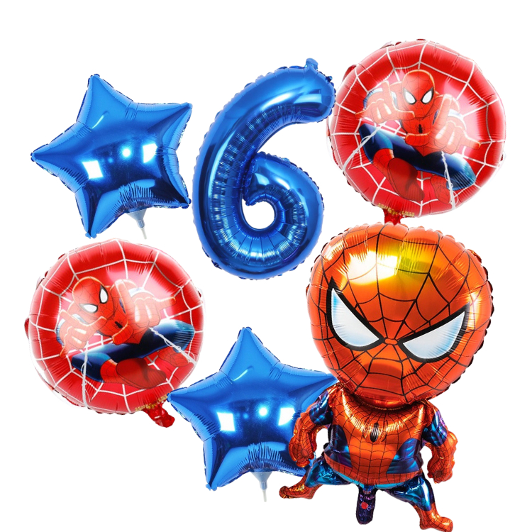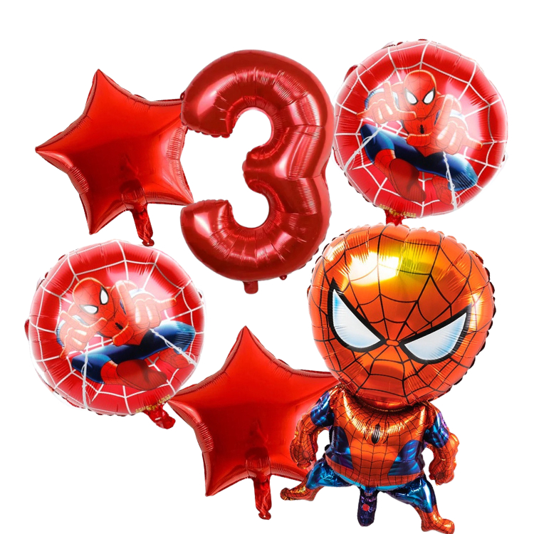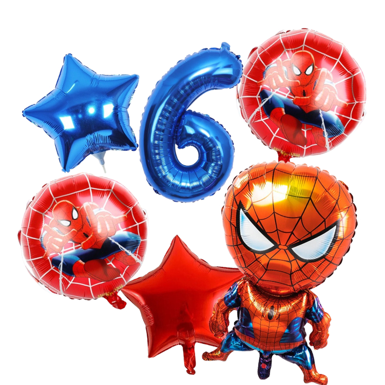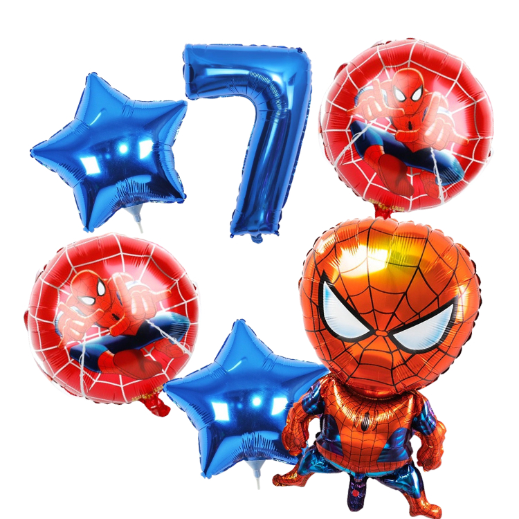 Kit 6 Balão Homem Aranha Heroi + Balão Redondo+ Estrela + Numero